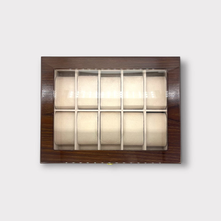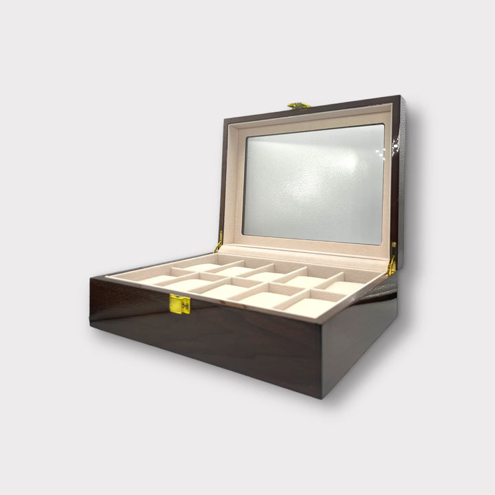 Present your watch collection in style with our 10 piece watch case. Made from luxurious wooden piano, this case will not only showcase your timepieces but also elevate your decor. Keep your watches organized and protected with this elegant and exclusive case.