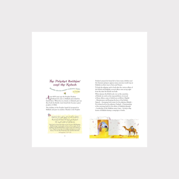 The book contains well known tales from the life of the Prophet Muhammad (saw) the Year of Elephant, the birth and childhood of the Prophet, the revelation of the Quran, the first Muslims, opposition of the Quraysh, the spread of Islam and migration to Madinah to mention just a few. It’s a exceptional experience the whole family will cherish and revisit again and again!