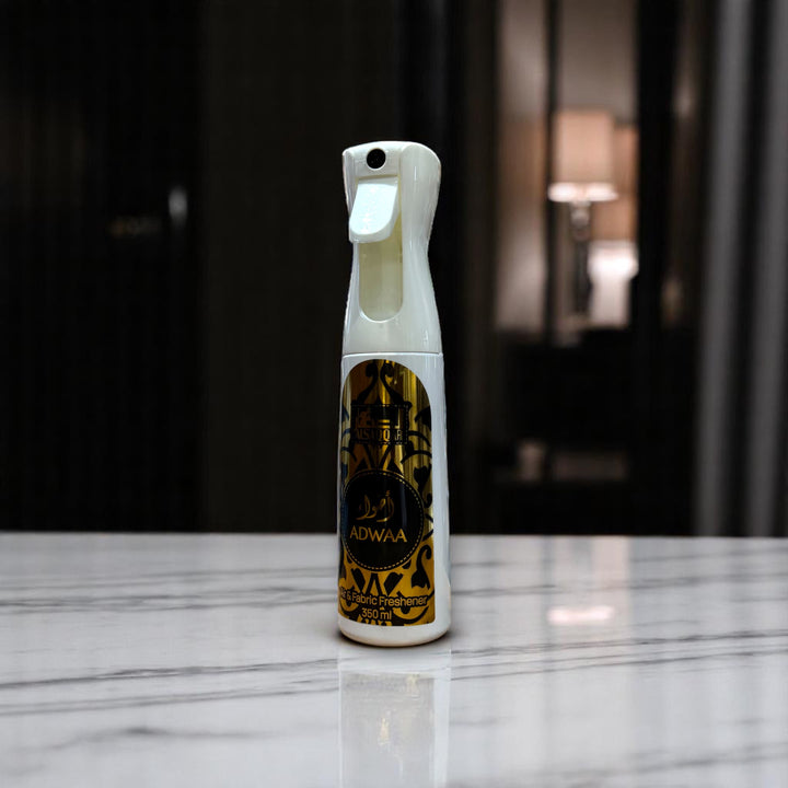 Keep your space smelling fresh and clean with Adwaa Air & Fabric Freshener. This powerful spray eliminates unwanted odors from the air and fabric, leaving behind a refreshing scent. Enjoy a clean and inviting environment with Adwaa.