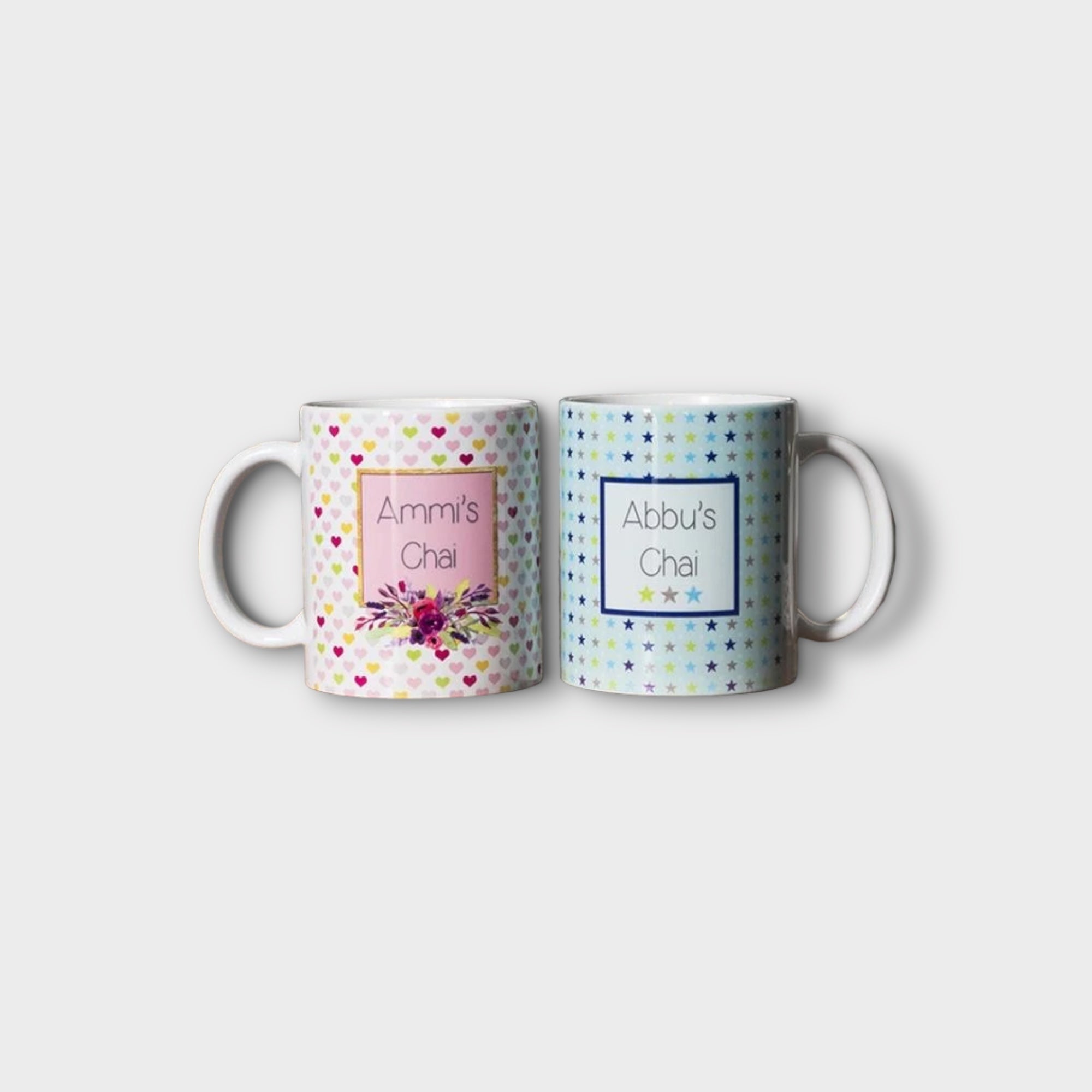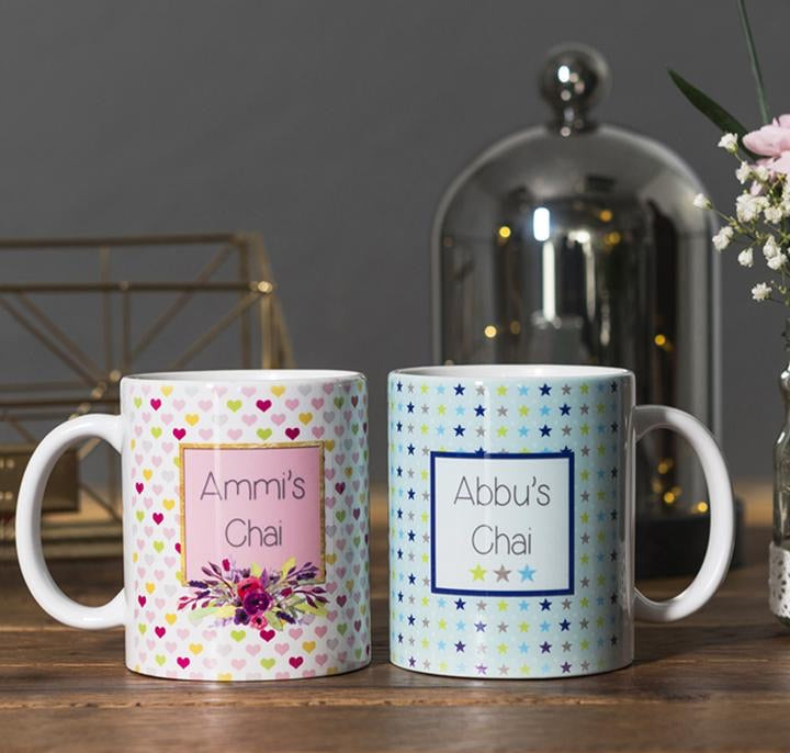 This lovely Abbu's Chai and Ammi's Chai mug set would bring a smile to any couples face. Show your parents love and affection with these fun and colourful mugs.