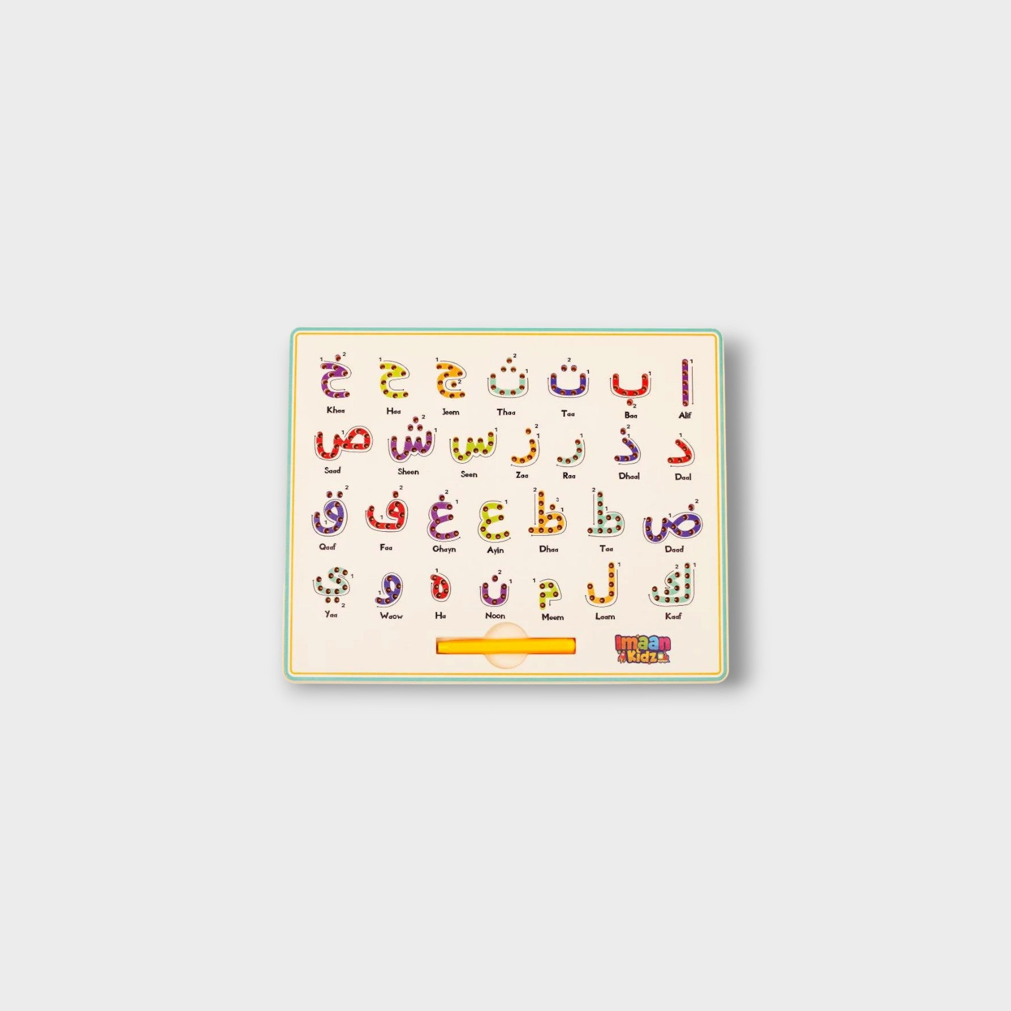 The Arabic Alphabet Magpad is a magnetic board that teaches children to read and write the Arabic Alphabet.