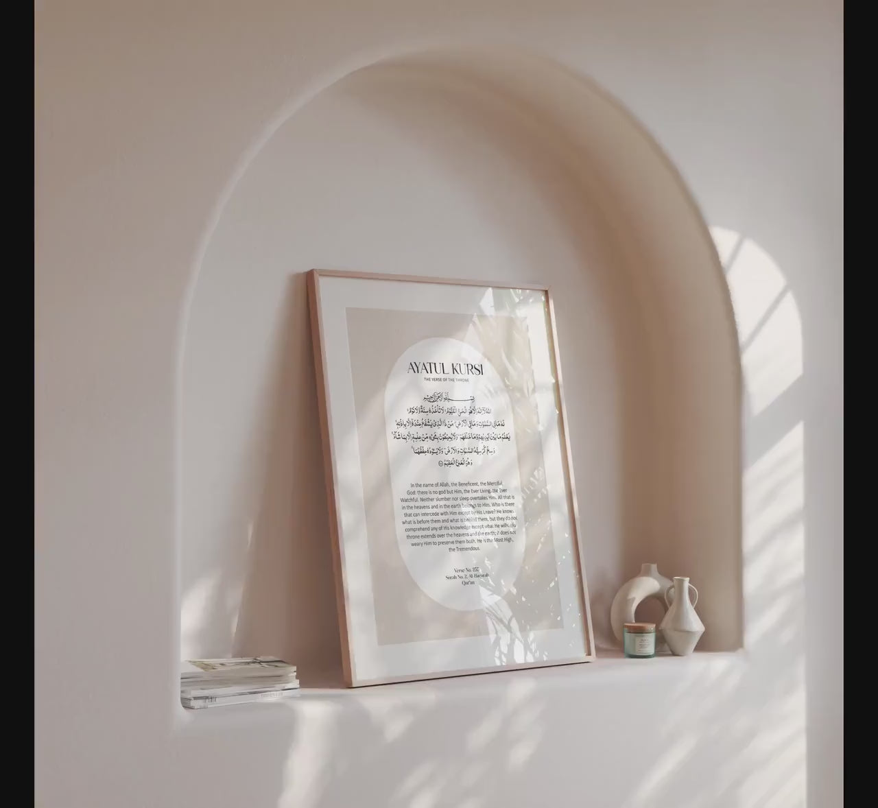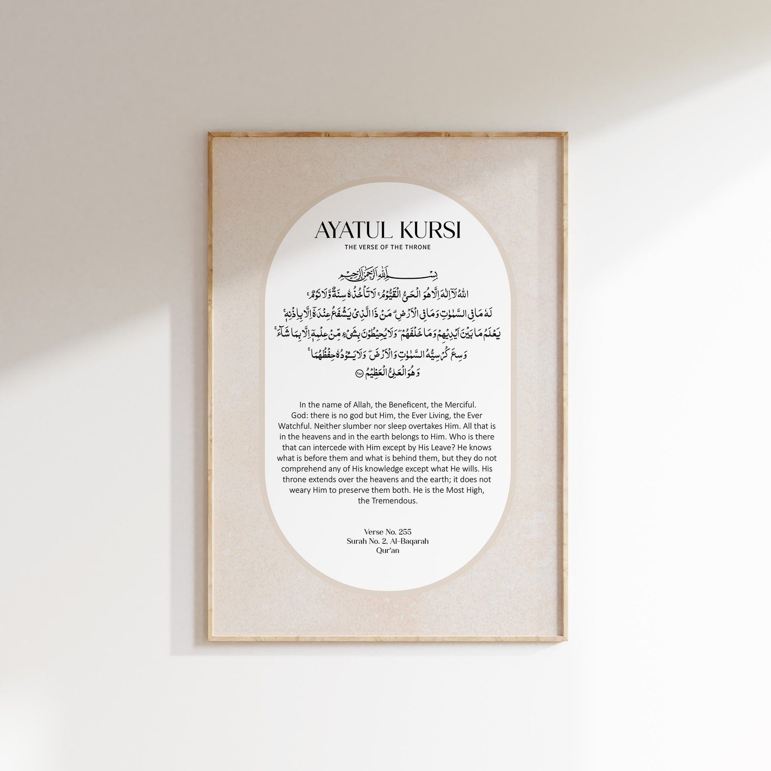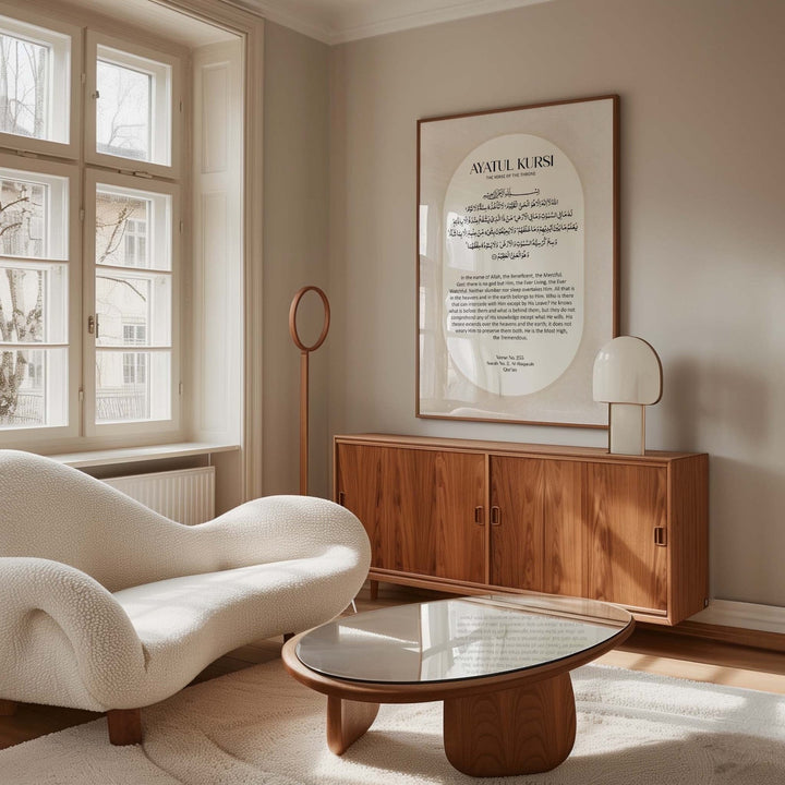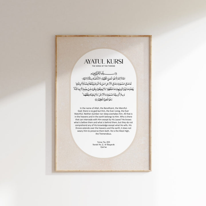 Are you in search of an elegant way to add Islamic wall art to your home? Or maybe looking for an Islamic gift? Look no further and illuminate your living space with this timeless Ayatul Kursi digital print. This exquisite piece includes the Ayatul Kursi in both Arabic and it’s English translation. The artwork has a slight soft texture applied to the background colour to create a little depth.