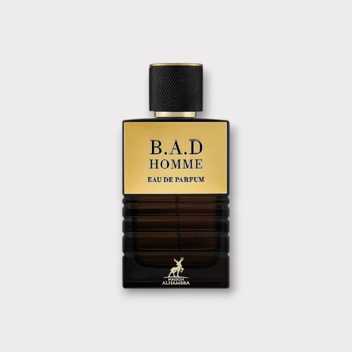 B.A.D Homme is a bold and audacious Eau de Parfum that embodies confidence and magnetic masculinity. This provocative fragrance opens with an electrifying trio of spices - crisp white pepper and pink pepper intertwined with the citrusy brightness of bergamot, creating an immediately arresting introduction. The heart reveals a sophisticated duo of aromatic clary sage and robust cedarwood, adding a refined yet rugged masculine character to the composition. The base notes of smooth tonka bean and rich cacao provide a seductively sweet and indulgent finish, leaving an irresistible trail that lingers with intent.