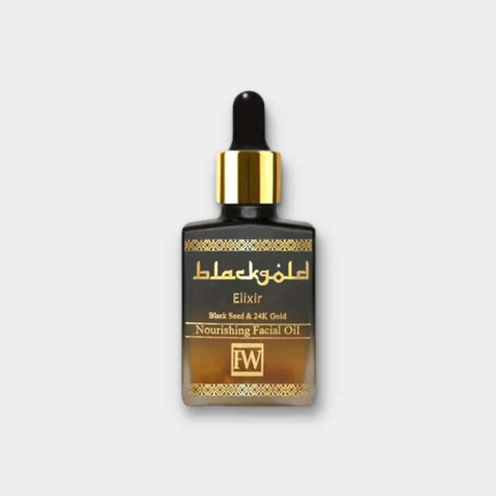 Black Gold is the ultimate nourishment for healthy skin! 24K Gold Infused In Black Seed Oil Rich in Omega 3, 6, Vitamin B, C, E, and Antioxidants. Use as an oil cleanser, moisturiser, or as a makeup base/primer.
