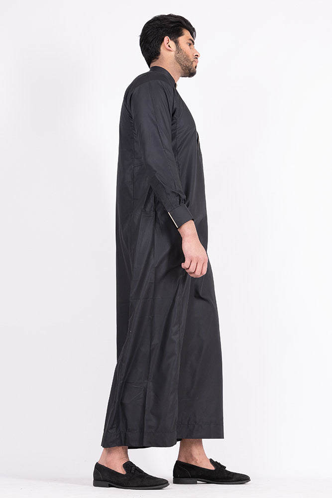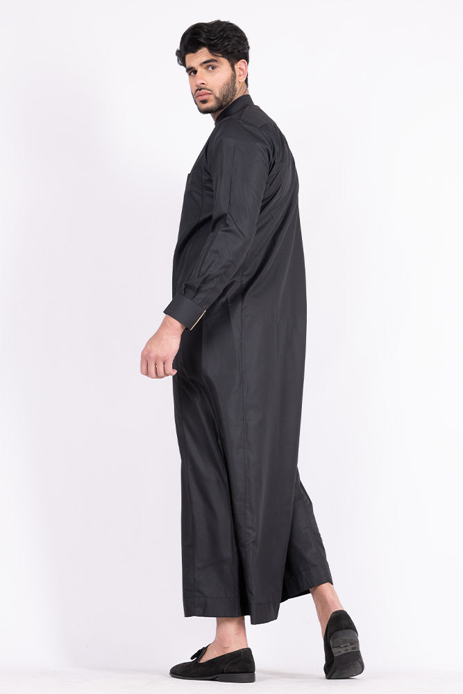 - Thin Gold Embroidery around front opening and to finish off the style with closed cuff piping