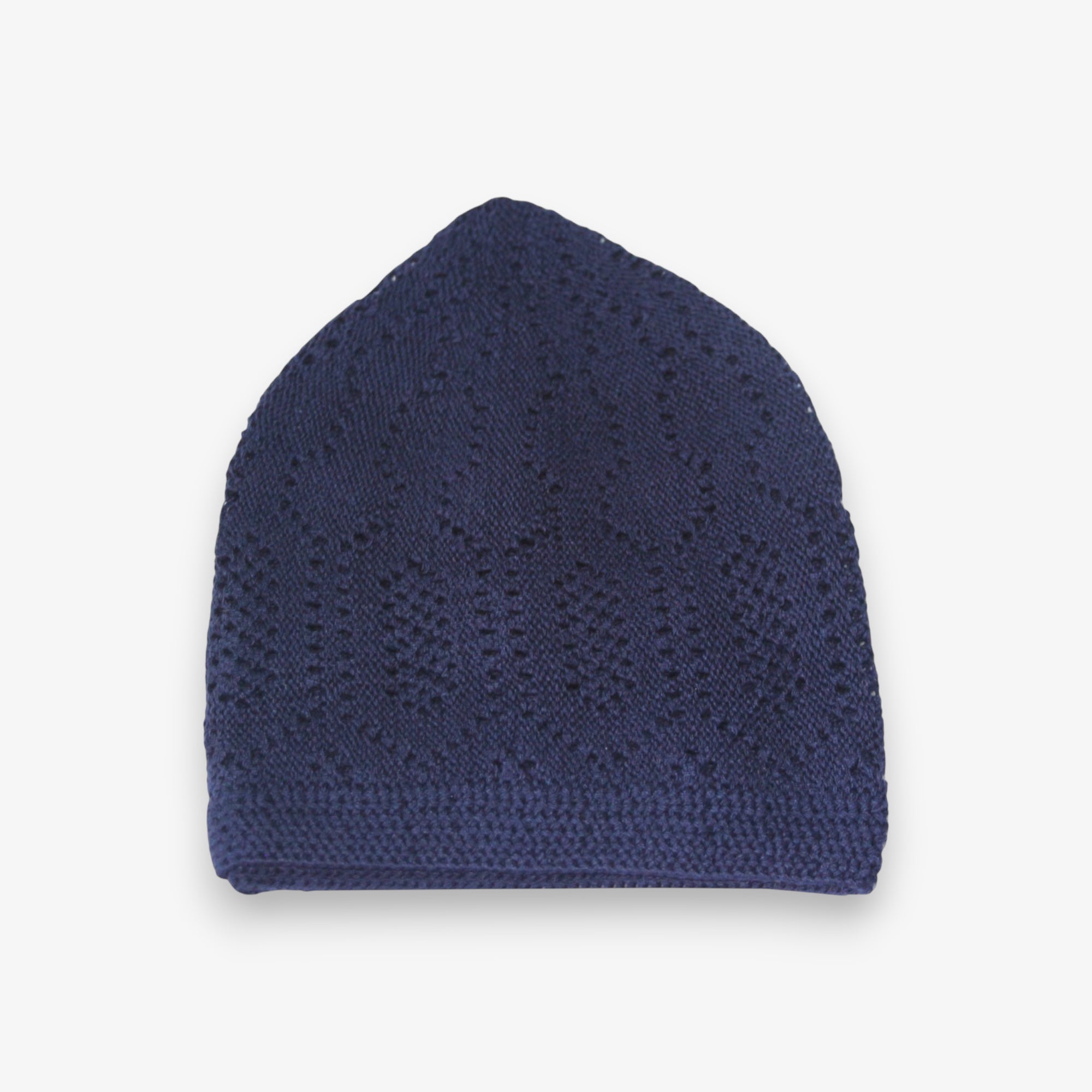 A lightweight, breathable Mercan topi designed for everyday comfort. The knitted pattern offers a clean, traditional look while maintaining flexibility and airflow. Soft, stretch-fit material ensures a secure and comfortable wear throughout the day.