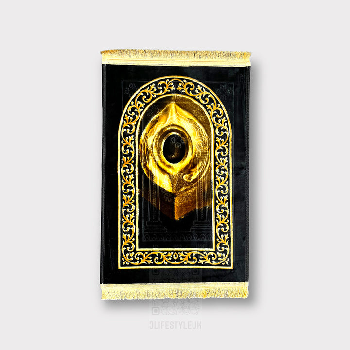 Crafted from luxuriously soft Velvet Feel fabric, our Black Stone Prayer Mat is the epitome of elegance and refinement. Its intricate texture and classic pattern make it a timeless staple for any prayer space, while its superior comfort and light weight offer an unsurpassed level of comfort for your daily prayer.