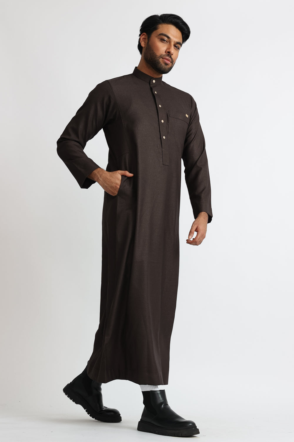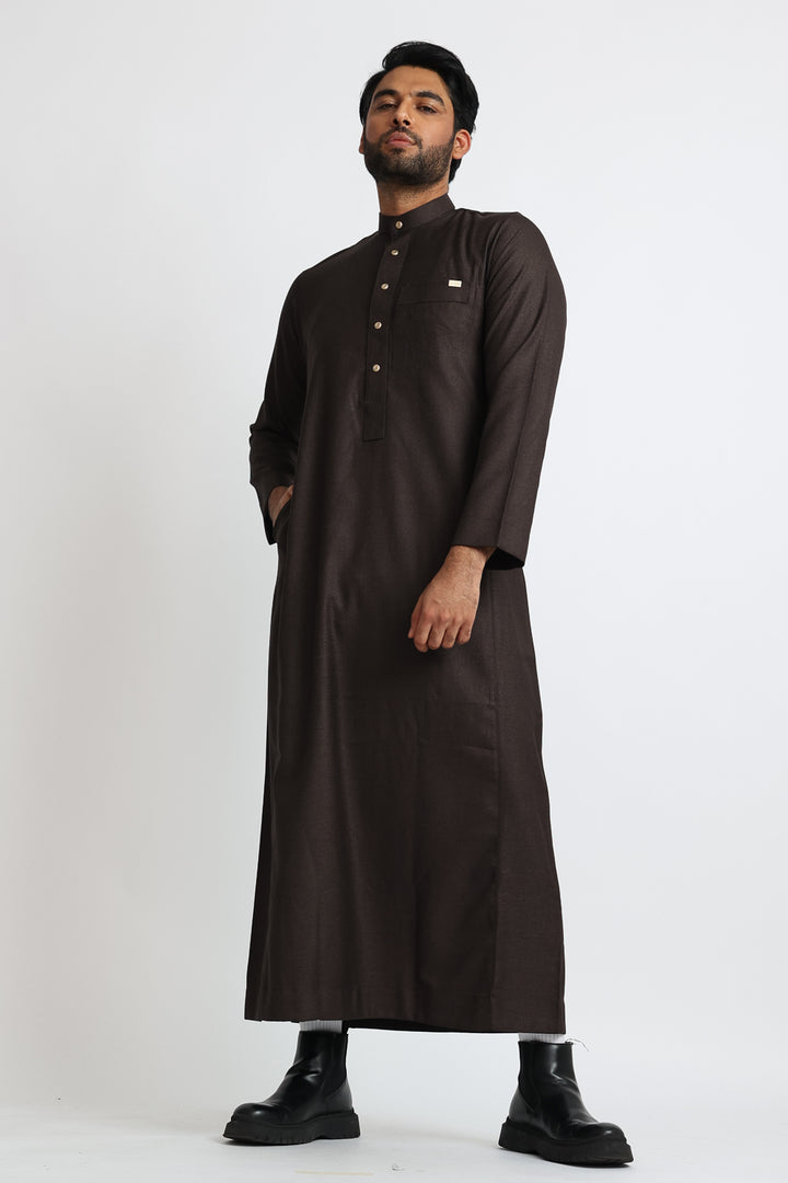 Avoid the chill and keep Cosy with our stylish/simplicity collection of Men’s Thobe at Jlifestyle. Our Winter Studded Thobe is stitched using Premium Suiting material and weighs 400gsm which means it will keep you warm this winter.