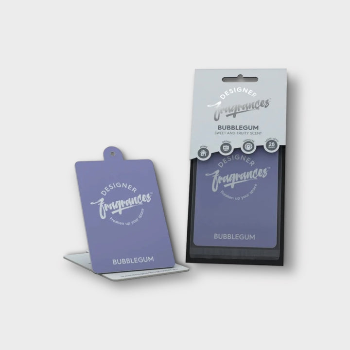 Inspired by delicious sweets, the Bubblegum air freshener has been infused with specially developed oils so that it smells just like fruity bubblegum. A fun, exciting scent that is fruity and fresh. Base scents of orange, peach, vanilla and pineapple.