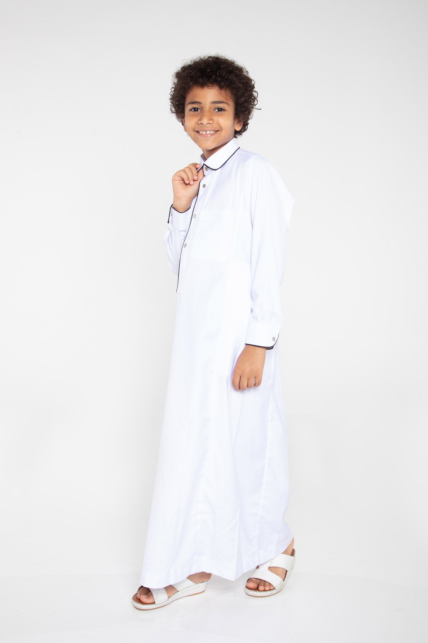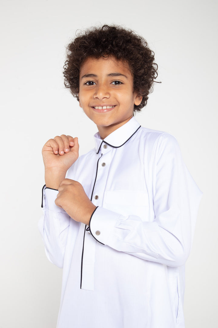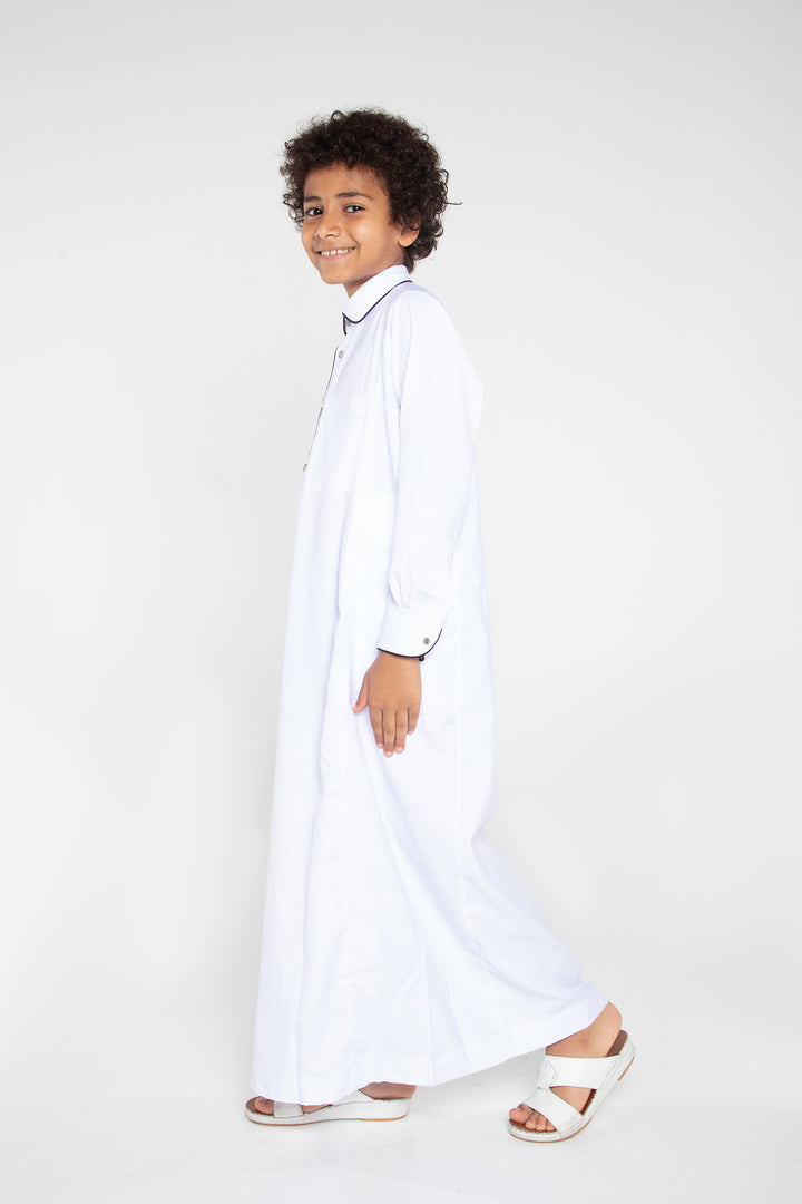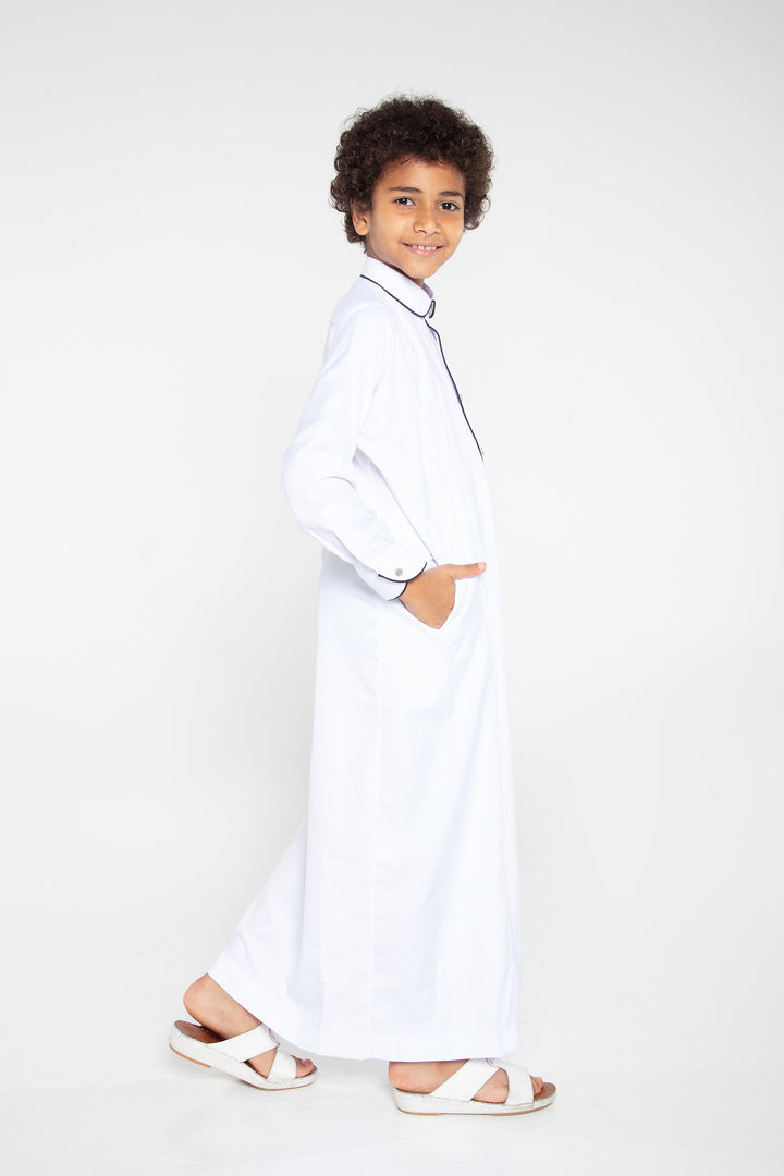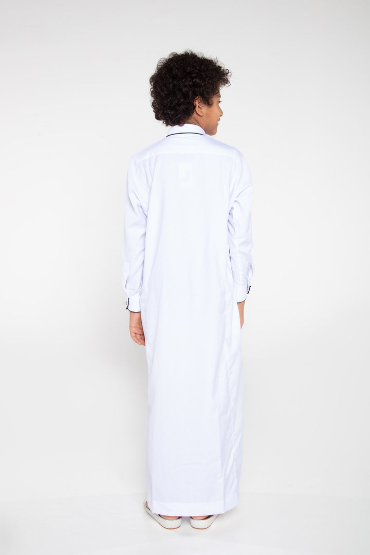 Thobe Colour | White/Navy Piping Contrast