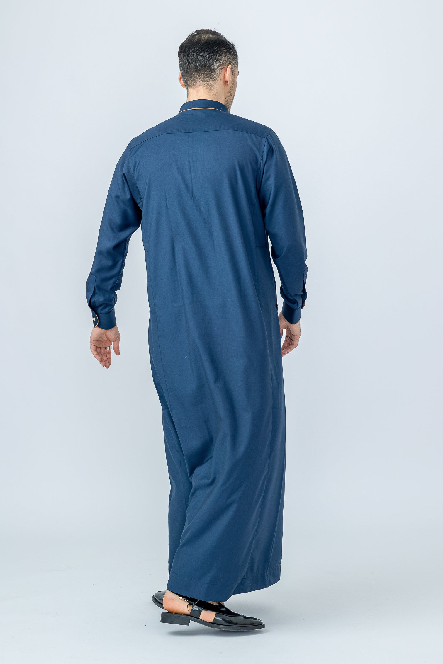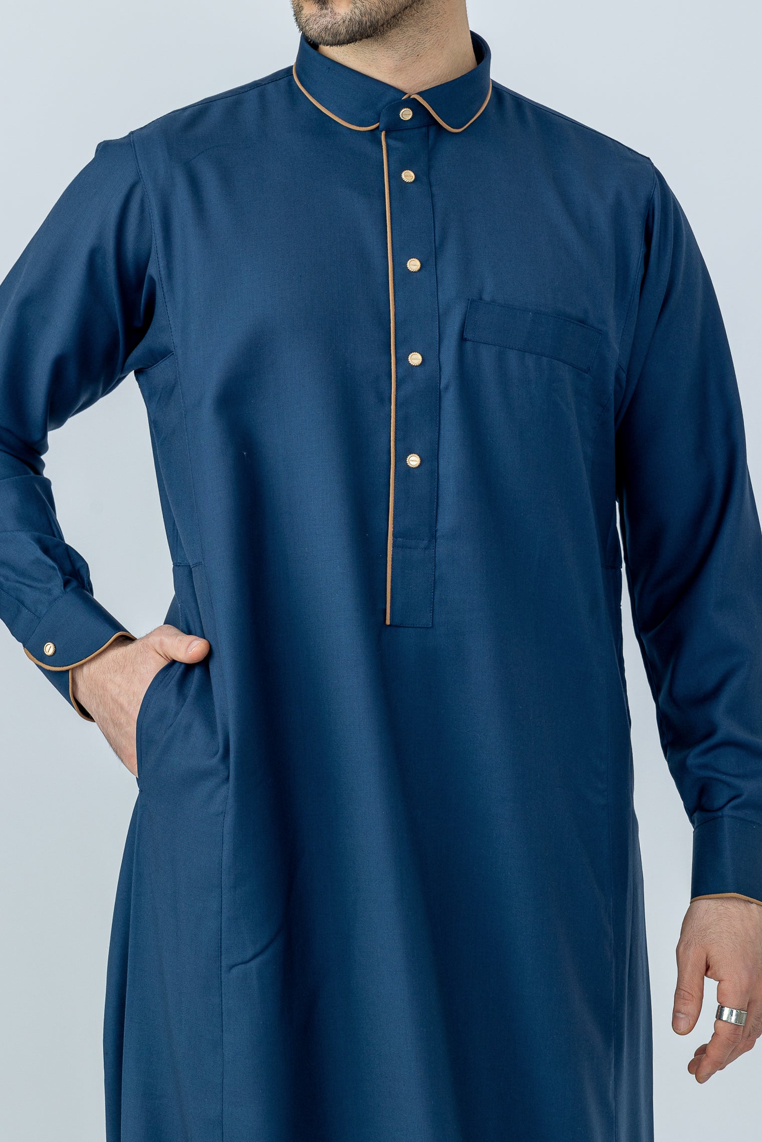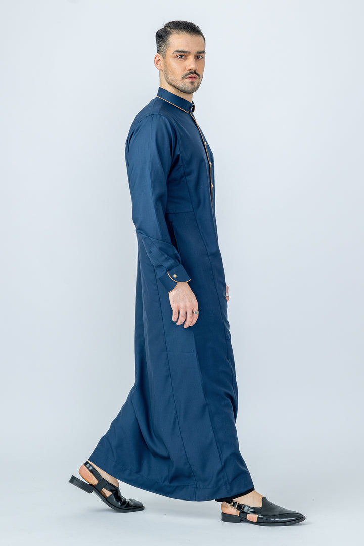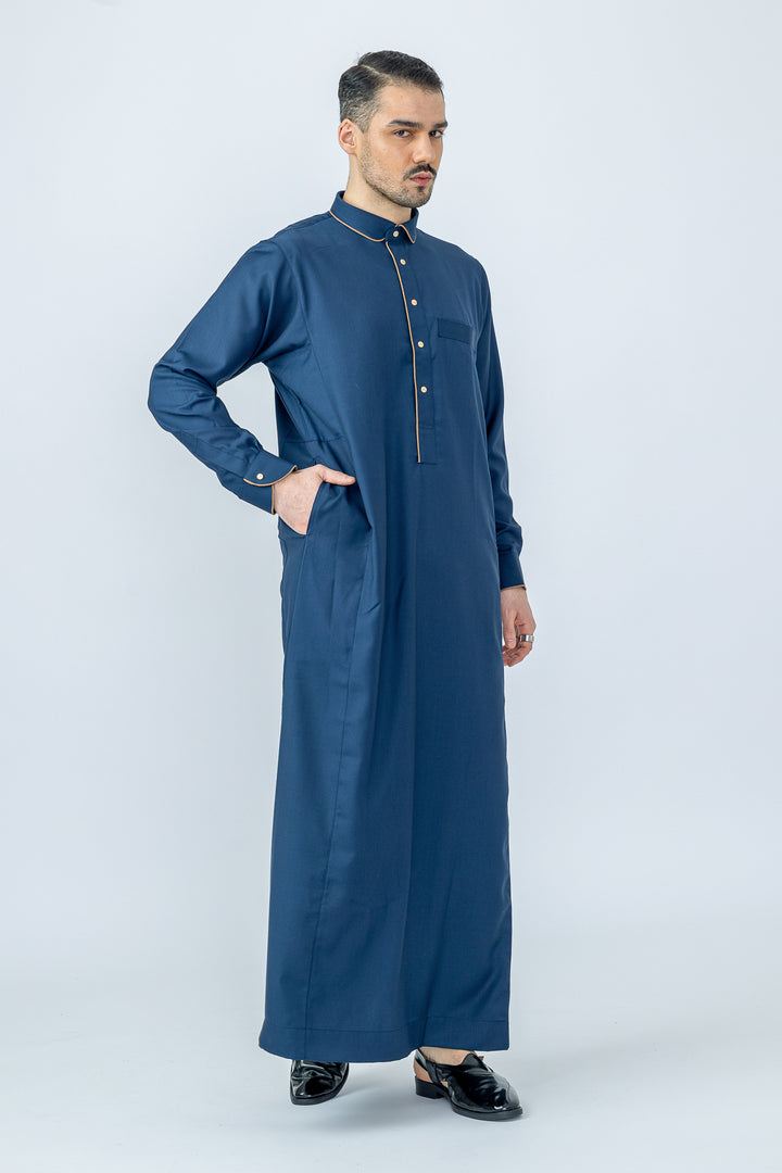 Thobe Colour | Navy/Golden Brown Piping Contrast