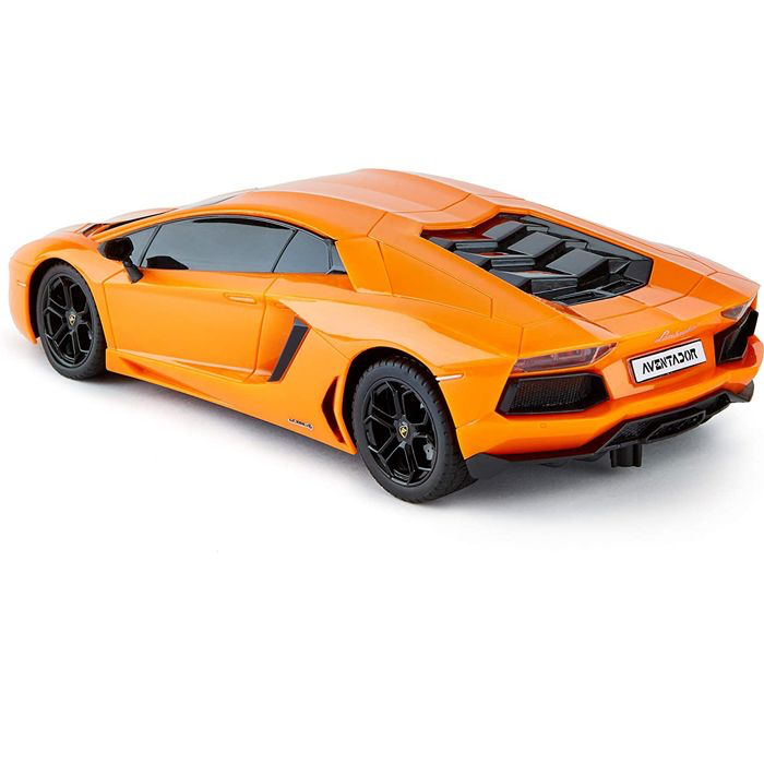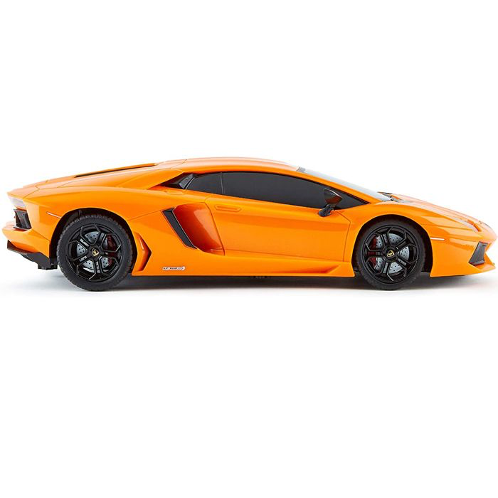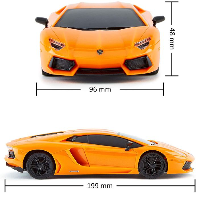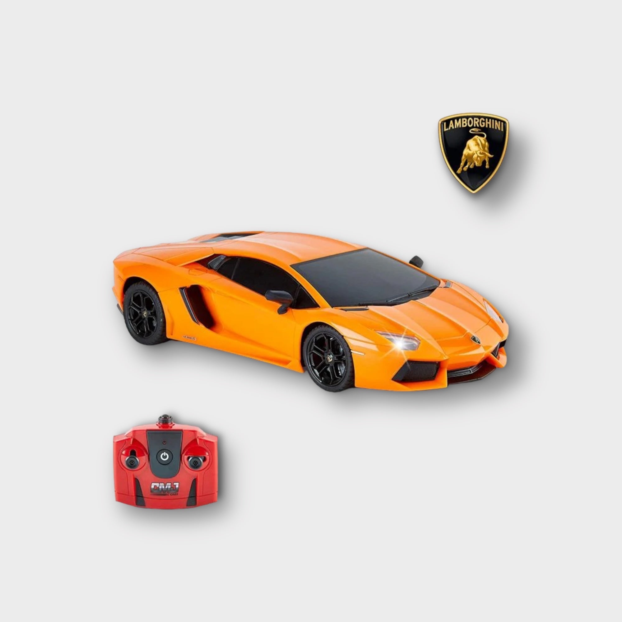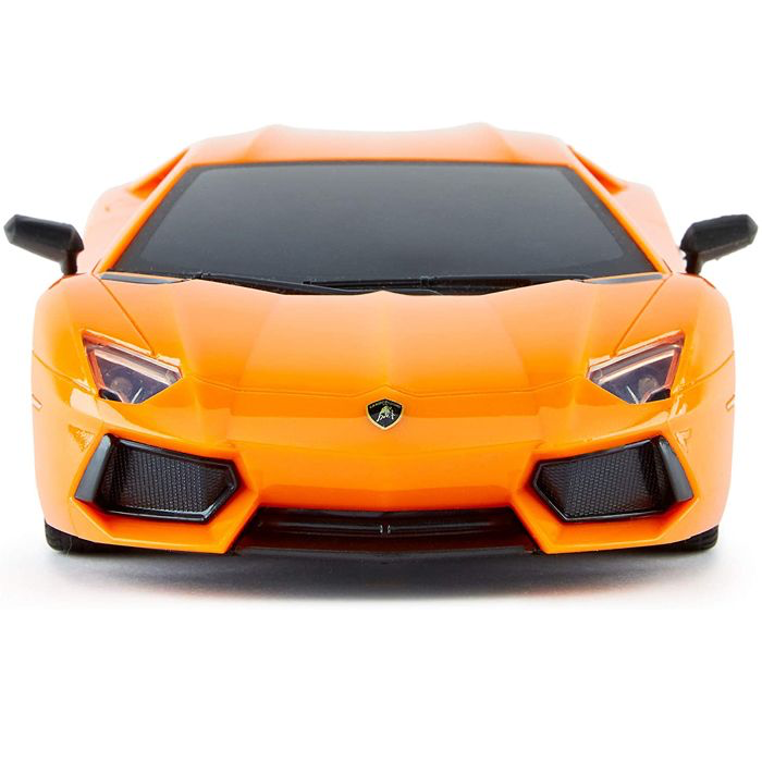 Remote Control 2.4 GHz Lamborghini Aventador LP700-4 in Orange. This 1:24 Scale replica model which is Officially Licensed by Lamborghini comes with four way function remote control and LED lights which illuminate when in motion. The car requires 5 AA Batteries- 2 for the controller and 3 for the vehicle. Operating on 2.4Ghz you can race 10 or more cars from the CMJ RC Cars series against each other with no interference. Hours of fun for car lovers young and old! Suitable for ages 6 plus.