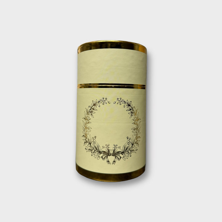 This round, Cream-colored gift box features a stunning flower crown design, making it the perfect packaging for any special occasion. Crafted with intricate attention to detail, this gift box is sure to impress and add a touch of elegance to your gift-giving. A must-have for any stylish and sophisticated gift-giver.