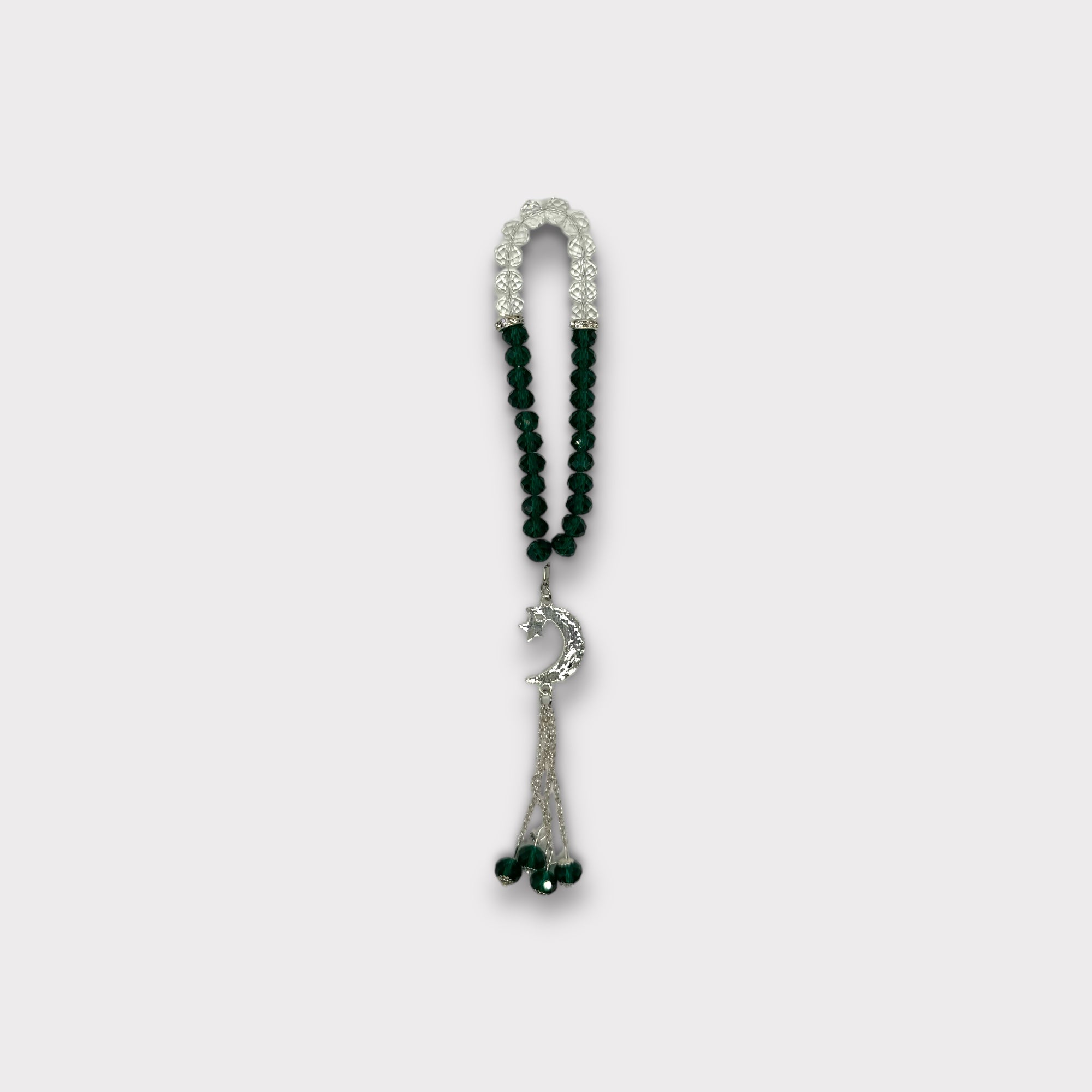 This Crescent Moon Tasbih features beautiful diamanté prayer beads that add a touch of elegance and sophistication to your prayer experience. The crescent moon design is a symbol of faith and devotion, and the diamanté detailing adds a touch of sparkle to your spiritual practice.