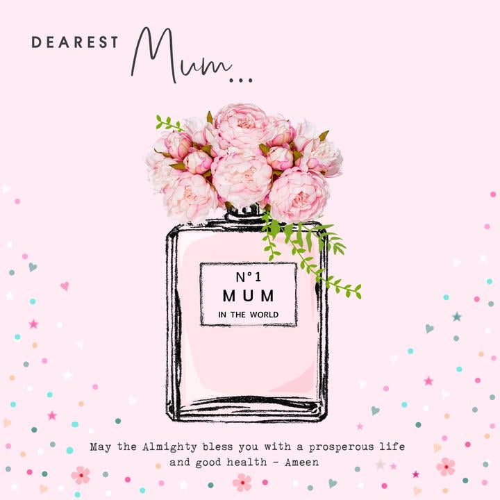 Dearest Mum...May the Almighty bless you with a prosperous life, good health and a strong emaan - Ameen. A loving and uplifting card with a positive message assuring your mother that you wish only the best for her. This thoughtful card is from the new 'Bijou Boutique' series of Islamic greeting cards.
