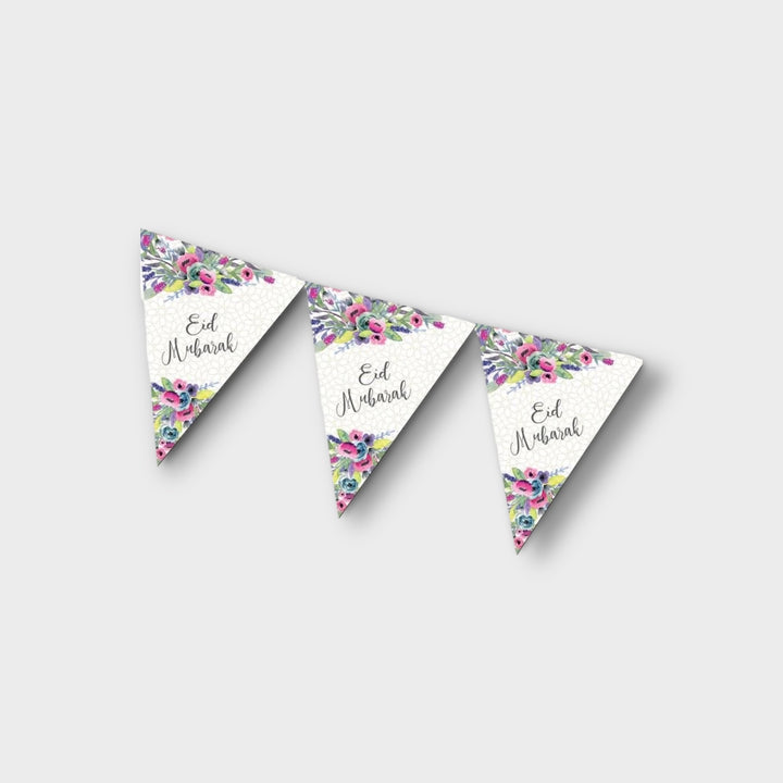 Eid Mubarak bunting in a floral watercolour design is elegant and vibrant!. Add some brightness and colour to the family gathering and decorate your home, school or venue with this stylish pack of reusable, double sided Eid party bunting.