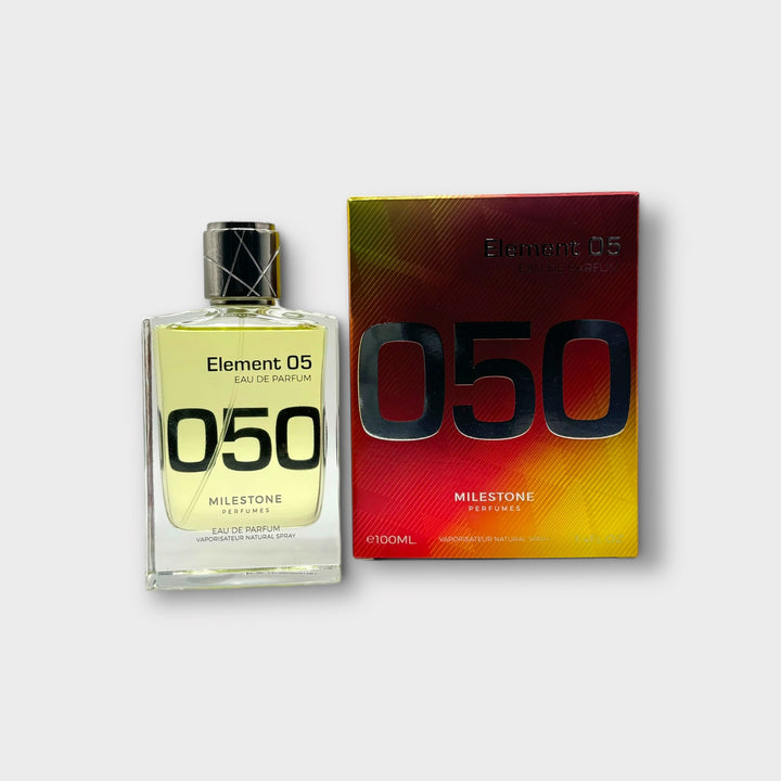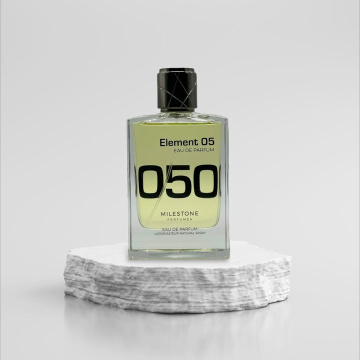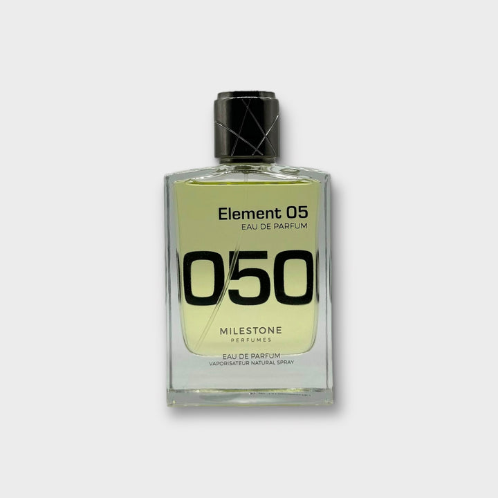 Elevate your senses with "Milestone Element 050," a 100ml Eau De Parfum that defines contemporary sophistication. This fragrance captures the essence of modern elegance with its unique blend, featuring top notes of refreshing Austrian lemonade 'almdudler', heart notes of crisp green jasmine buds and a 'gin and tonic' accord, and a profound base of 13.5% Ambroxan, enhancing its mineral essence. Experience super-long-lasting freshness and subtle sensuality that lingers, making this fragrance your passport to a world of lasting allure.