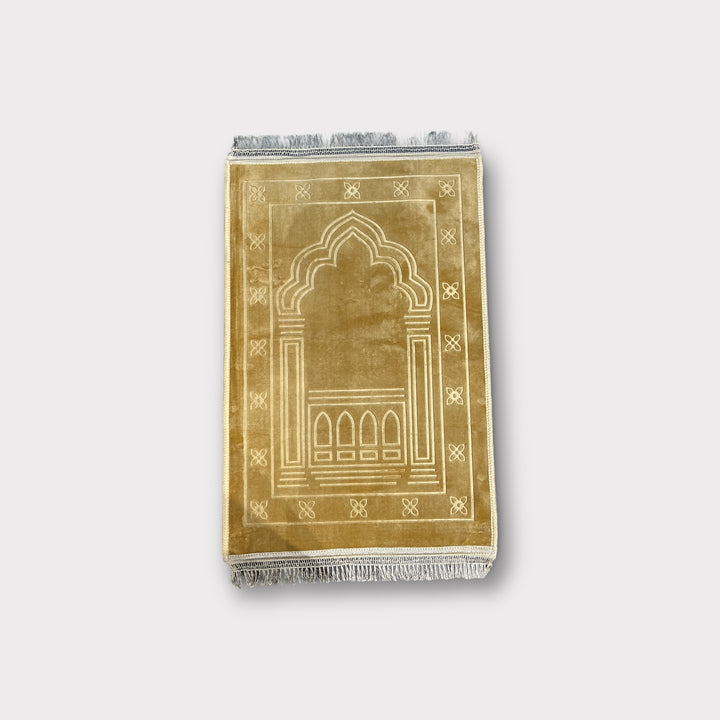 Crafted from luxuriously soft Velvet Feel fabric, our Beige Foam Pattern Prayer Mat is the epitome of elegance and refinement. Its intricate texture and classic pattern make it a timeless staple for any prayer space, while its superior comfort and light weight offer an unsurpassed level of comfort for your daily prayer.