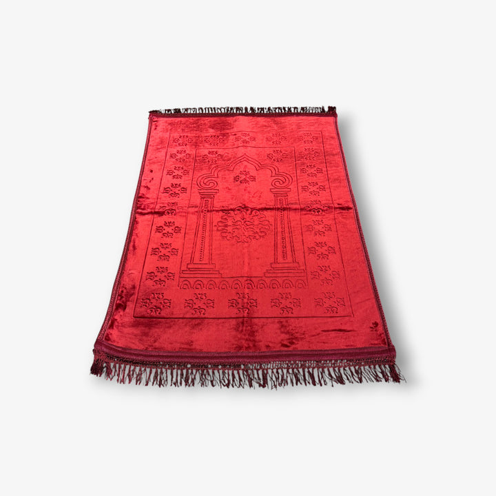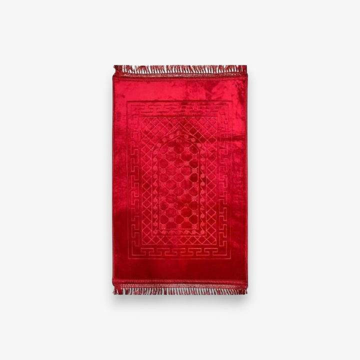 Crafted from luxuriously soft Velvet Feel fabric, our Deep Red Foam Pattern Prayer Mat is the epitome of elegance and refinement. Its intricate texture and classic pattern make it a timeless staple for any prayer space, while its superior comfort and light weight offer an unsurpassed level of comfort for your daily prayer.