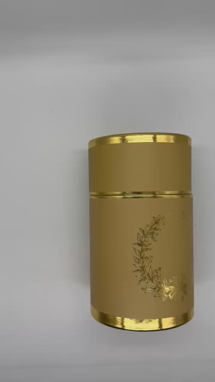 This round, gold-colored gift box features a stunning flower crown design, making it the perfect packaging for any special occasion. Crafted with intricate attention to detail, this gift box is sure to impress and add a touch of elegance to your gift-giving. A must-have for any stylish and sophisticated gift-giver.