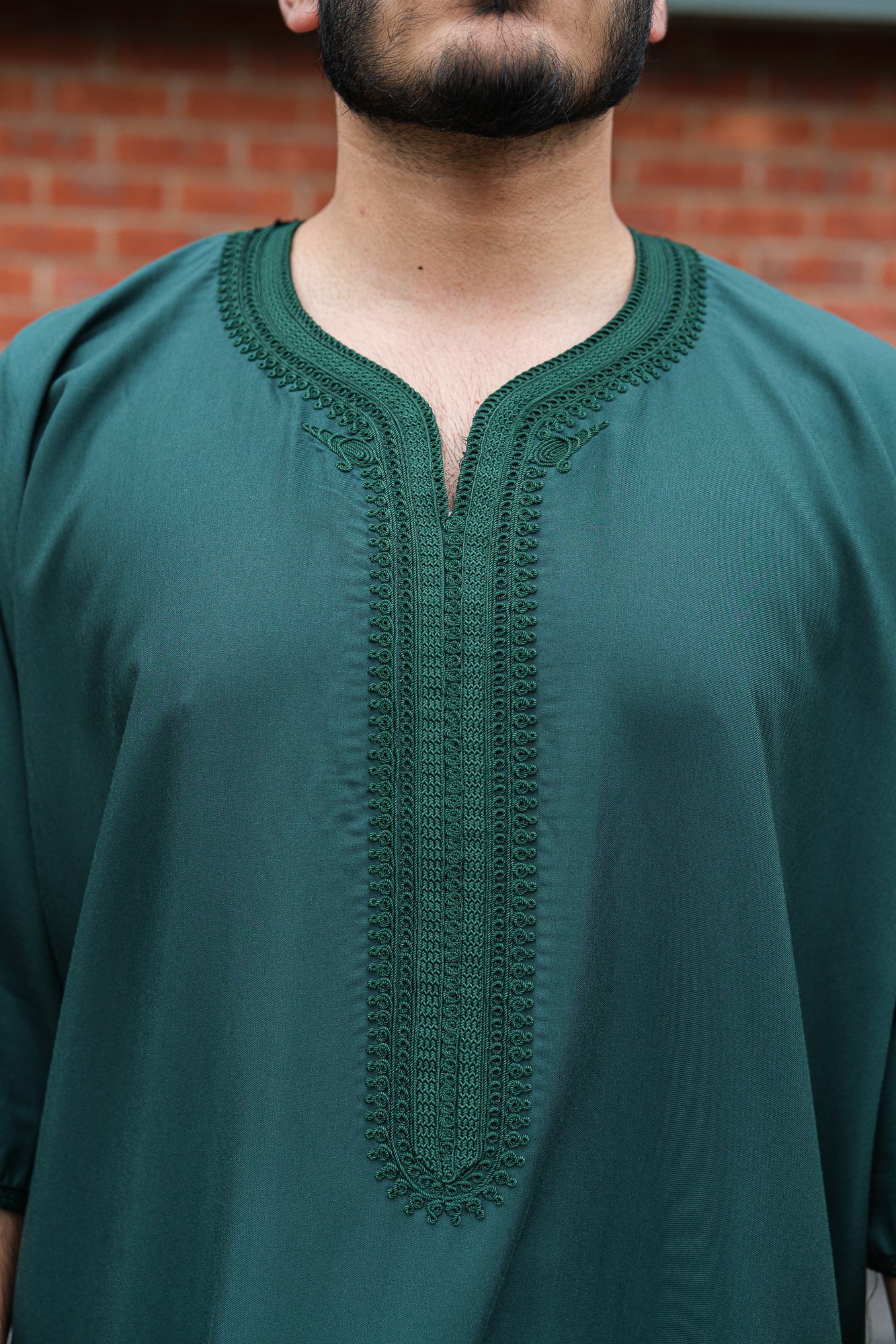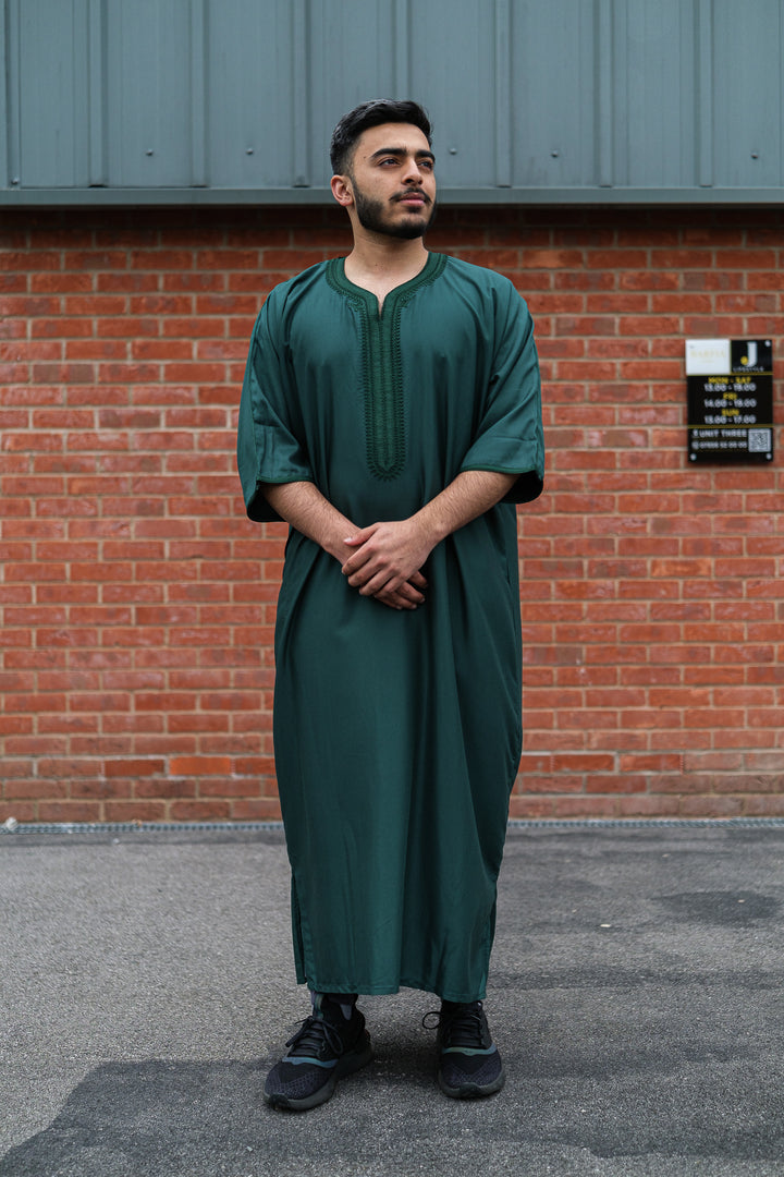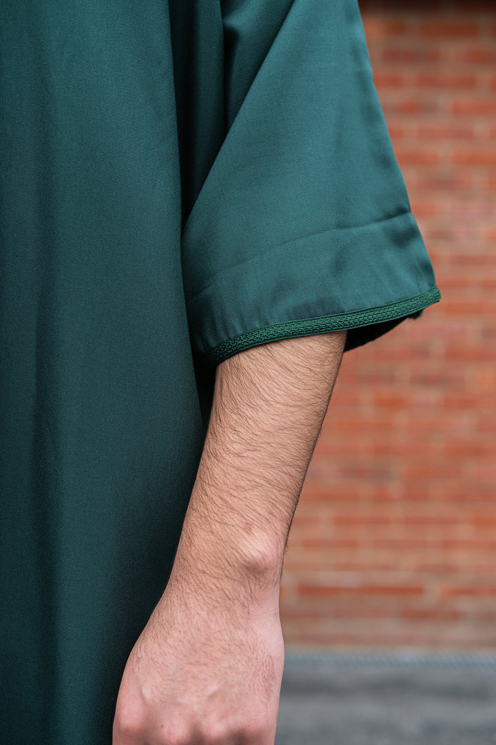 Discover a remarkable way to stay comfortable and look sharp in the heat of summer - Green Moroccan Thobes! Crafted from a breezy cotton-blend fabric, these half-sleeve Thobes are perfect for relaxed wear and include one side pocket for your convenience. Refresh your wardrobe with a stylish and adaptable item that keeps you cool and looking fabulous!