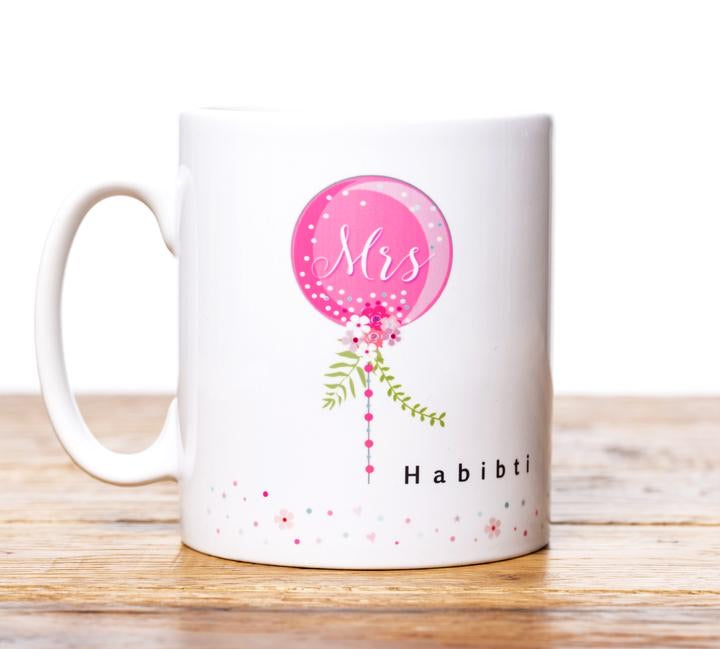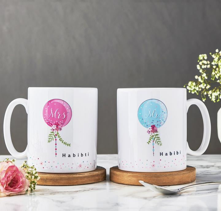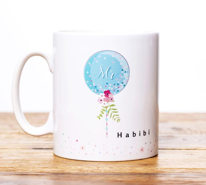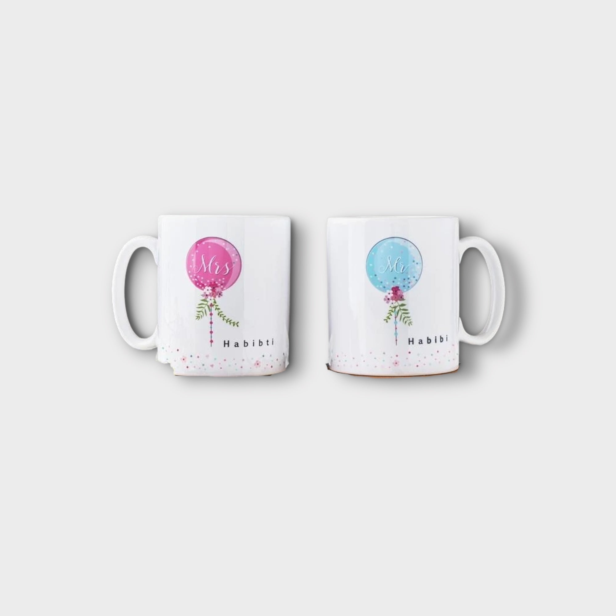 - 2 x 10 oz white ceramic mugs - Mr habibi & Mrs habibti mug set