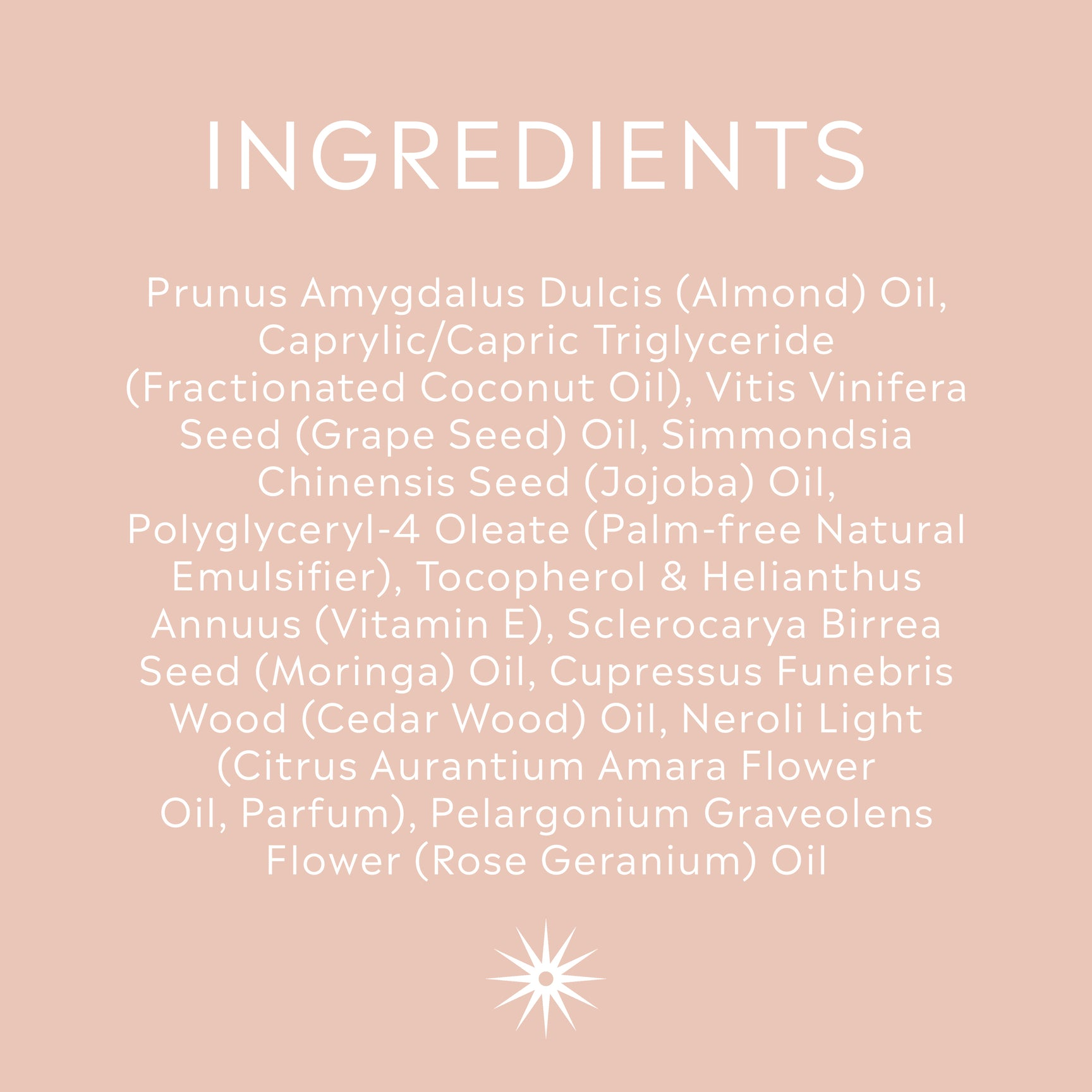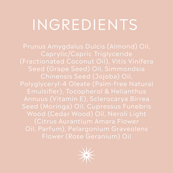 Heavy Petal combines our signature hydrating oil base of almond oil, vitamin E and jojoba with notes of delicate neroli, sweet cedar wood and rose geranium. Perfect for pouring under hot water for a luxurious bath or using as a nourishing daily moisturiser!