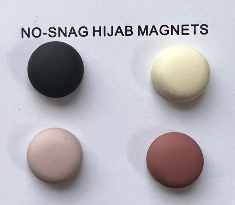 You can attach our new hijab magnets under the chin, use them to secure the hijab fabric at the back of your head, or place and secure your hijab on your clothes.