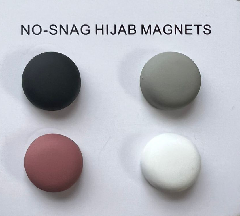 Are you fed up with so many holes and snags in the hijab? Our Hijab magnets are the ultimate enhancement from traditional hijab pins that frequently snag hijabs, irritate the skin and reduce the life cycle of the garment.
