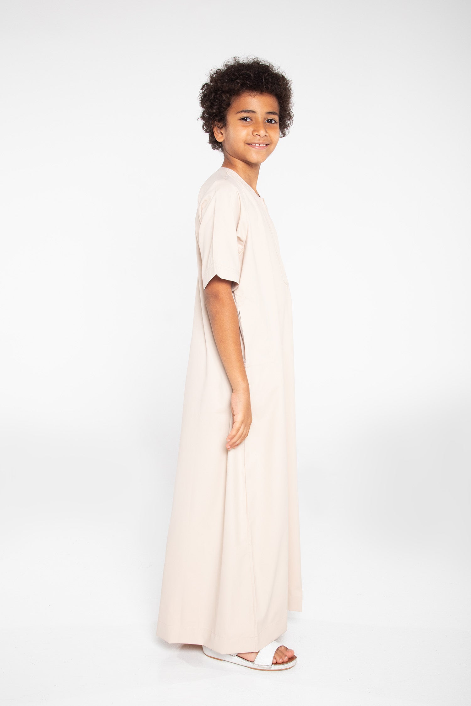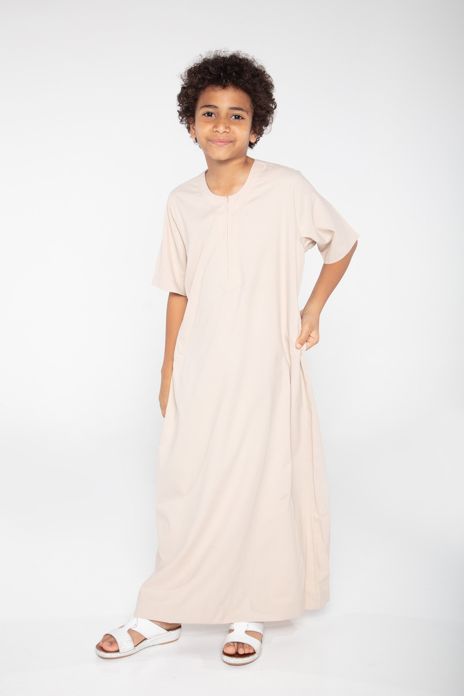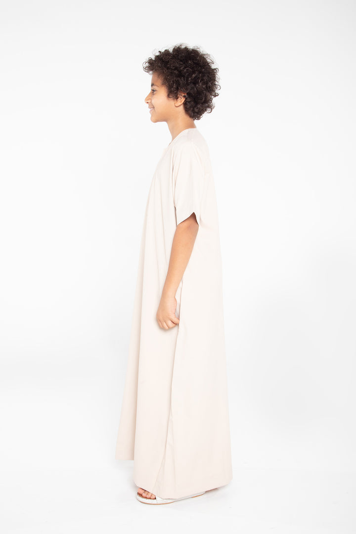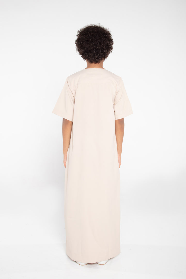 The Almond Short Sleeve Thobe is a wardrobe essential for any smart/casual occasion. Boasting 100% polyester fabric, this half sleeve Thobe is perfect for comfortable all-day wear.
