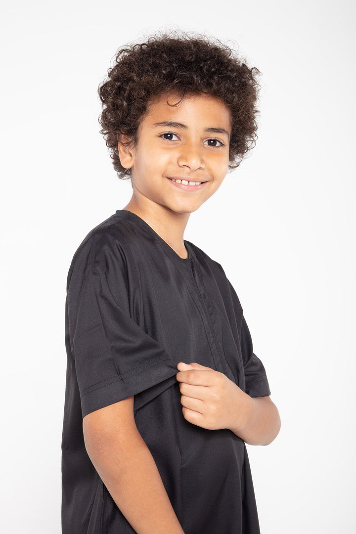The Black Short Sleeve Thobe is a wardrobe essential for any smart/casual occasion. Boasting 100% polyester fabric, this half sleeve Thobe is perfect for comfortable all-day wear.