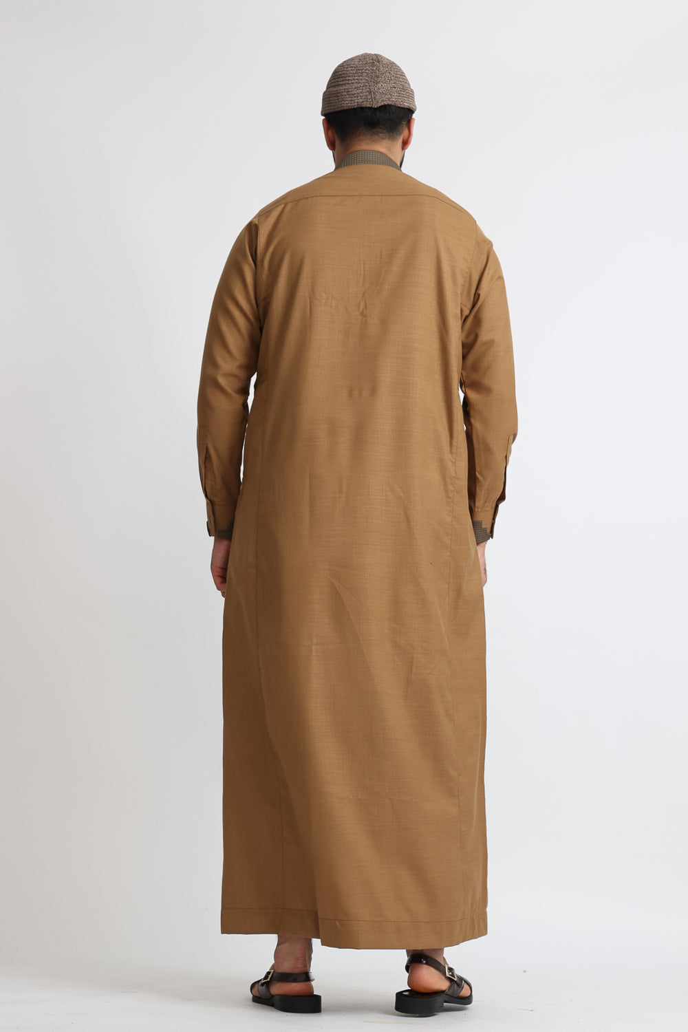 The Al Noor Thobe is a must-have for anyone looking to make a statement without sacrificing comfort. Made of high-quality polyester material that is sewn to perfection, this thobe is sure to turn heads.