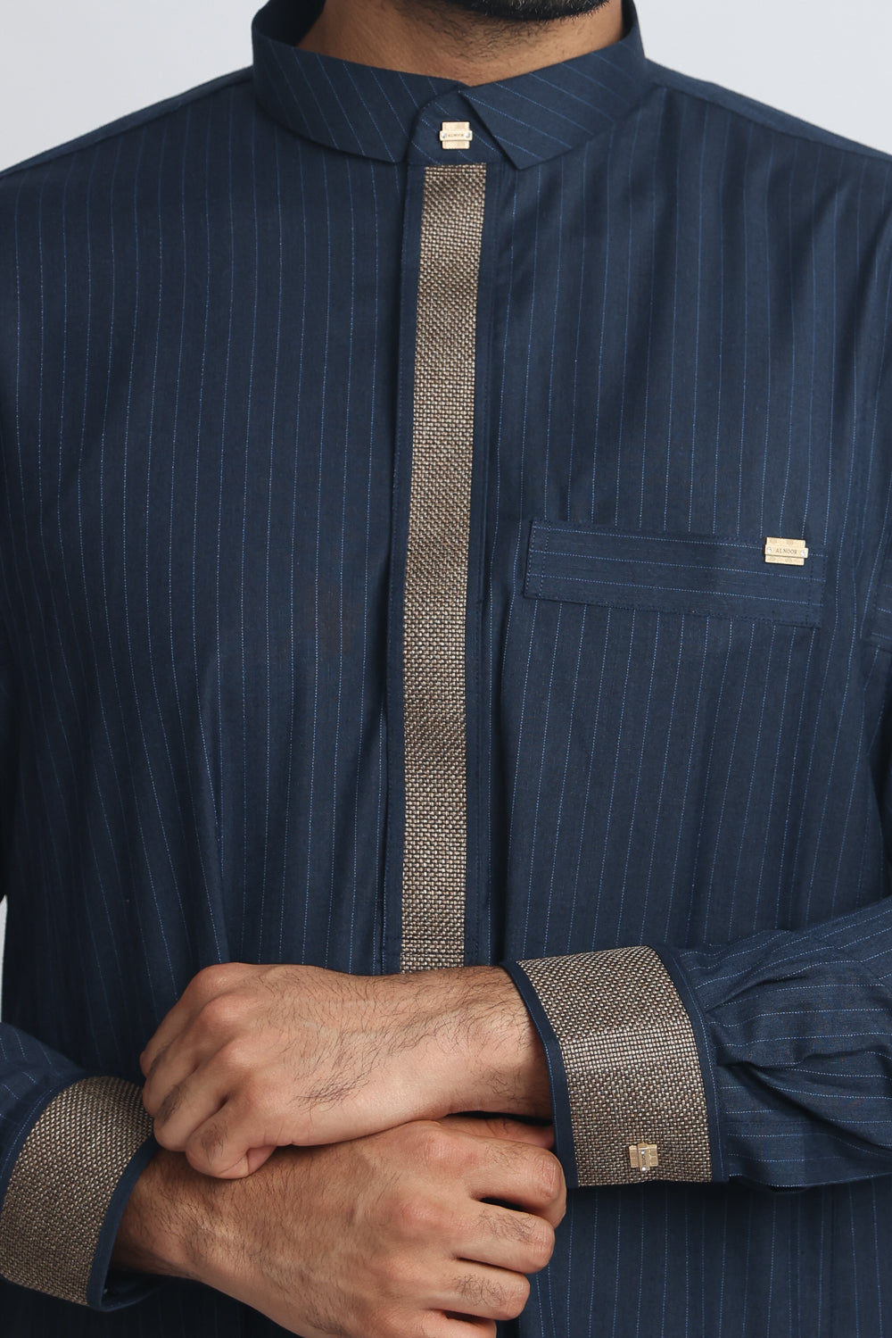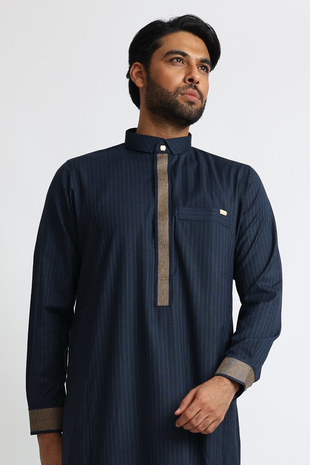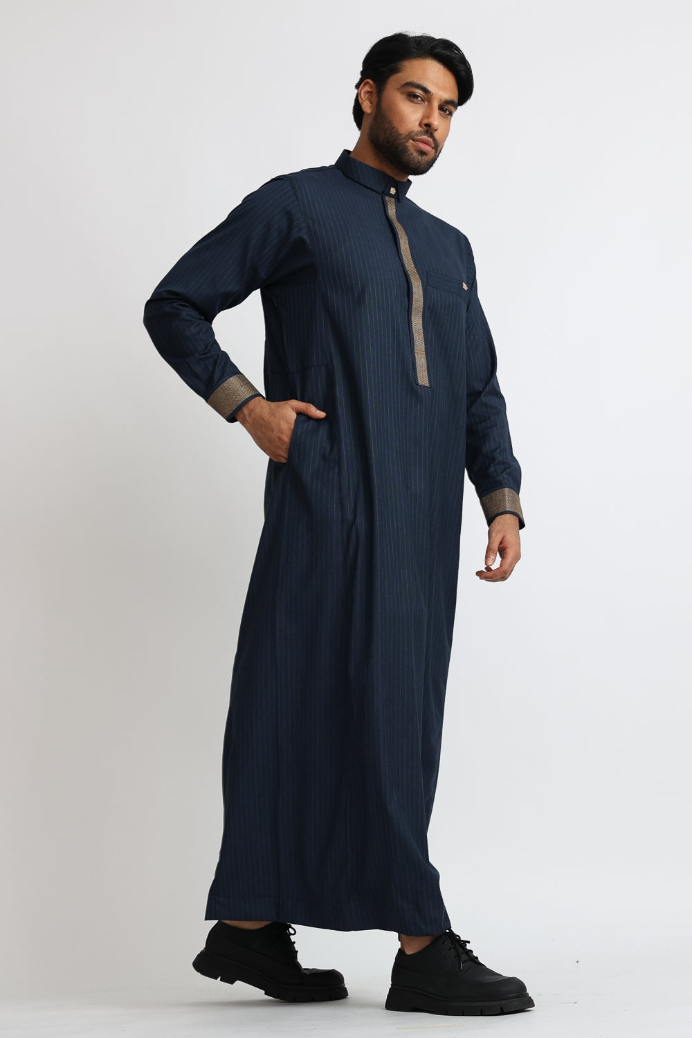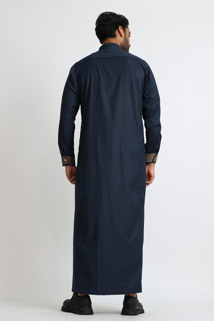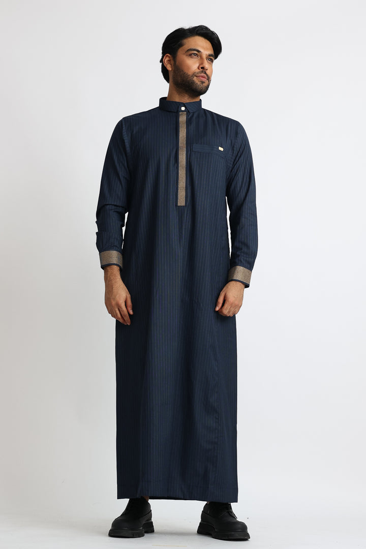 We’re excited to announce that our collaboration with Al Noor is stronger than ever, bringing you the latest must-have collection for Ramadan 2025: the Navy Pinstripe Thobe.