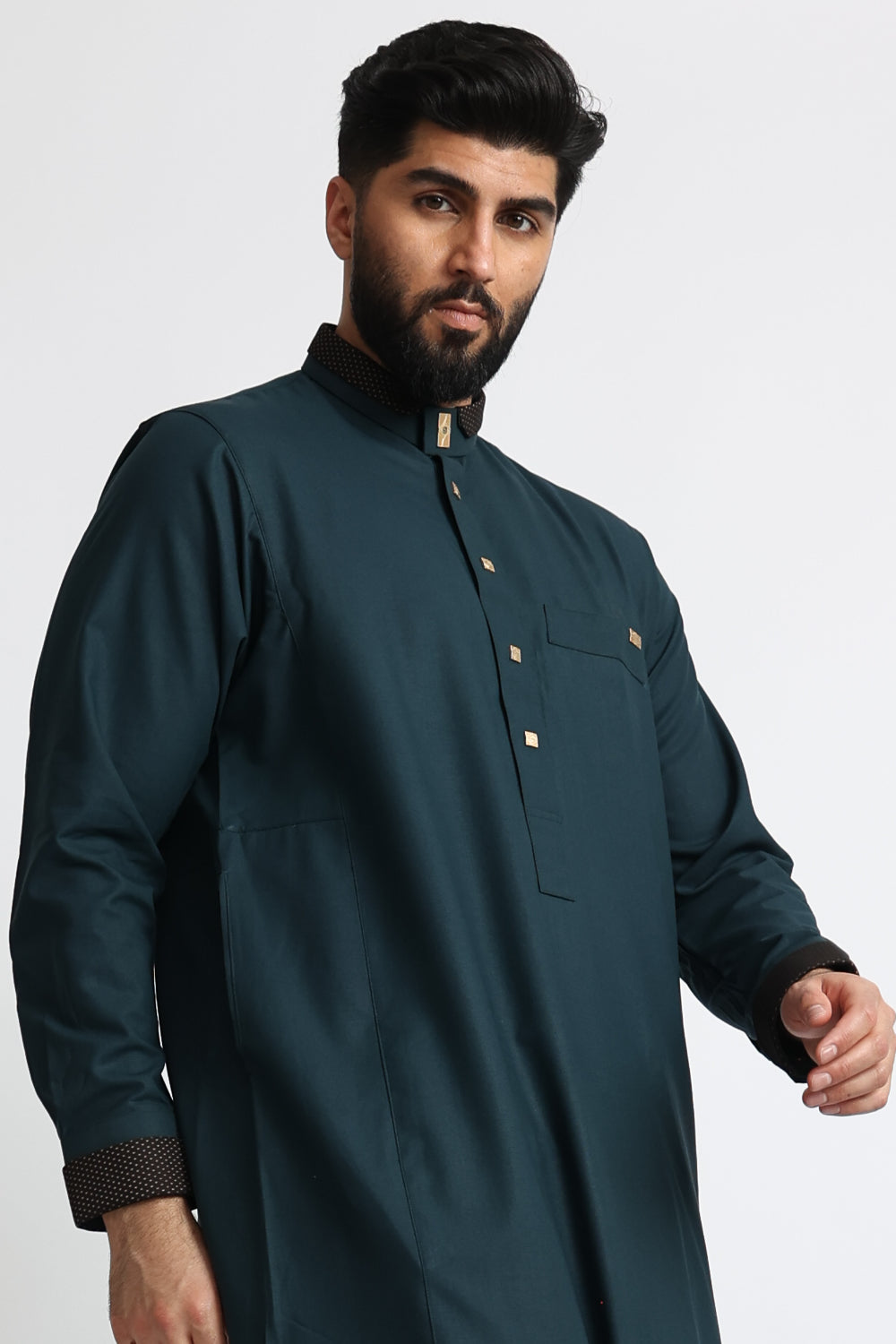 The Al Noor Premium Thobe is tailored to perfection, ensuring that it fits flawlessly no matter what body type you have. It comes complete with Gold Buttons that add an extra touch of elegance to this already luxurious piece of clothing.