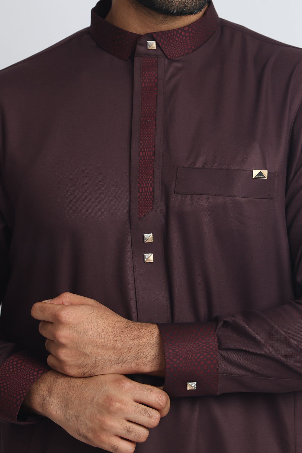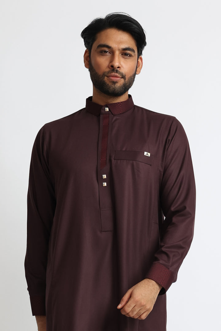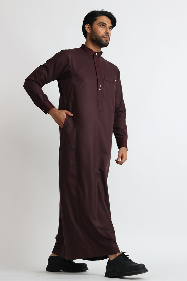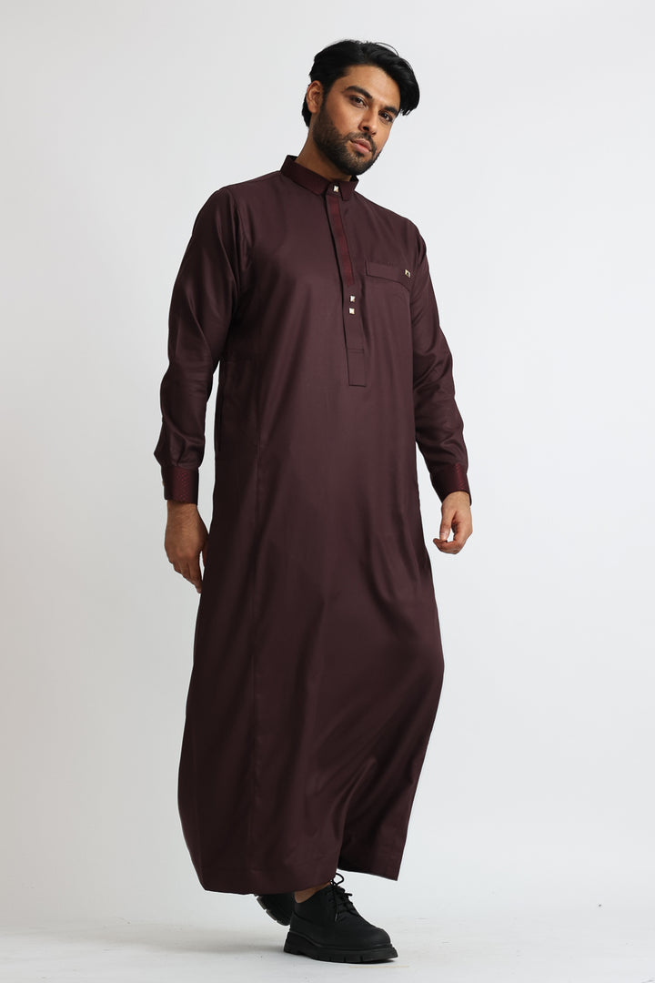 We’re excited to announce that our collaboration with Al Noor is stronger than ever, bringing you the latest must-have collection for Ramadan 2025: the Old Burgundy Collar Thobe.
