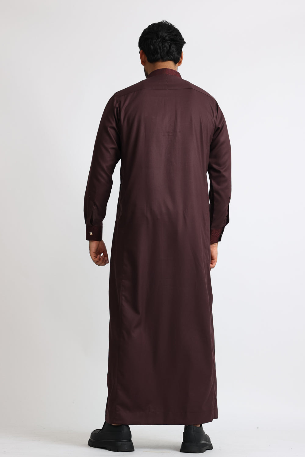 This exclusive thobe is crafted with premium details that combine elegance and practicality: