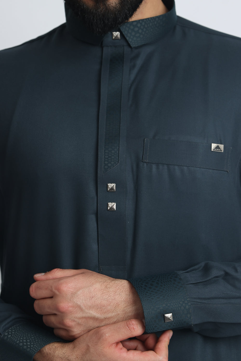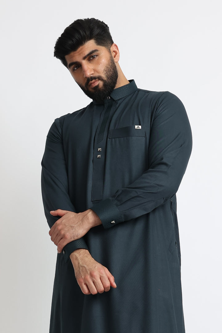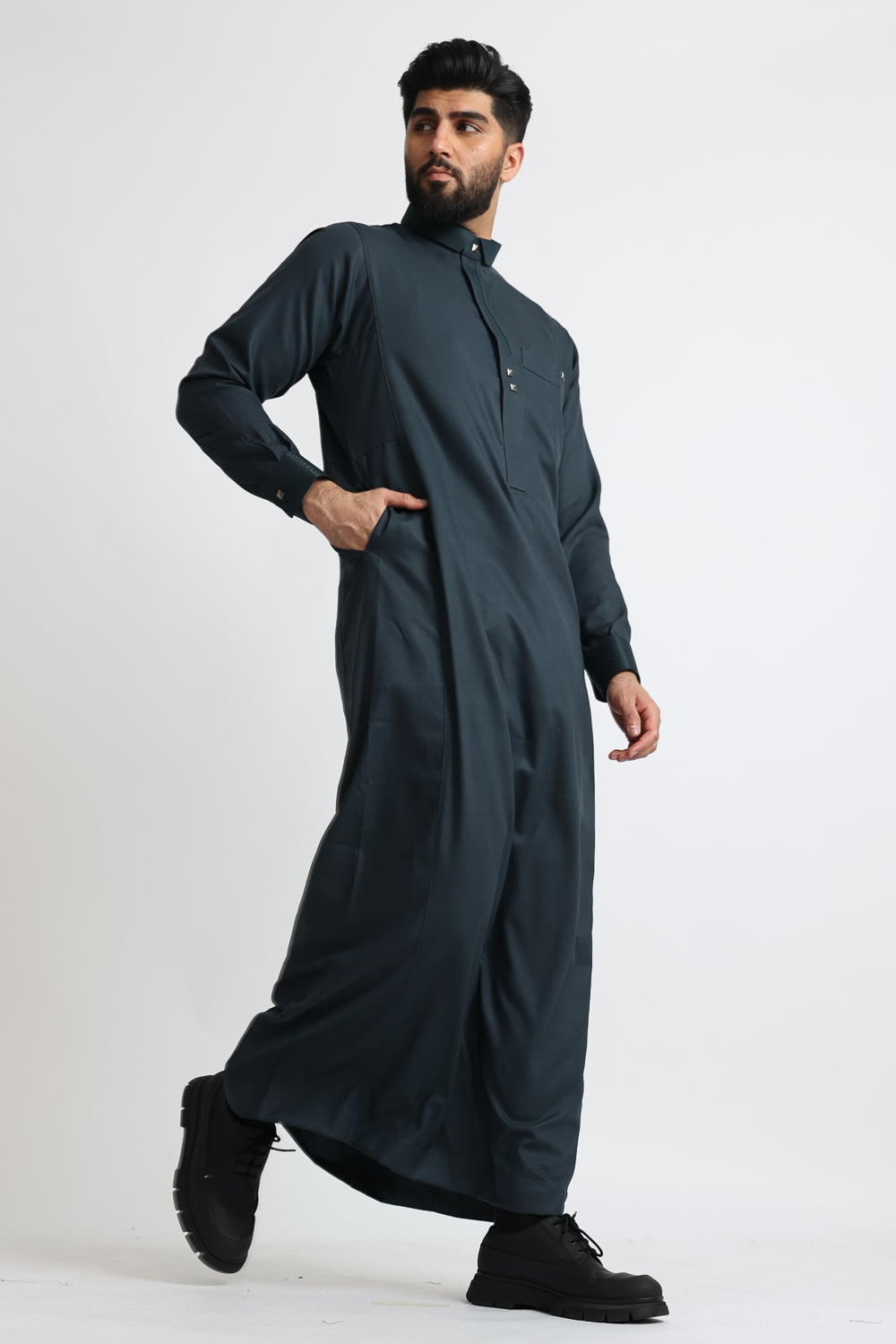 This exclusive thobe is crafted with premium details that combine elegance and practicality:
