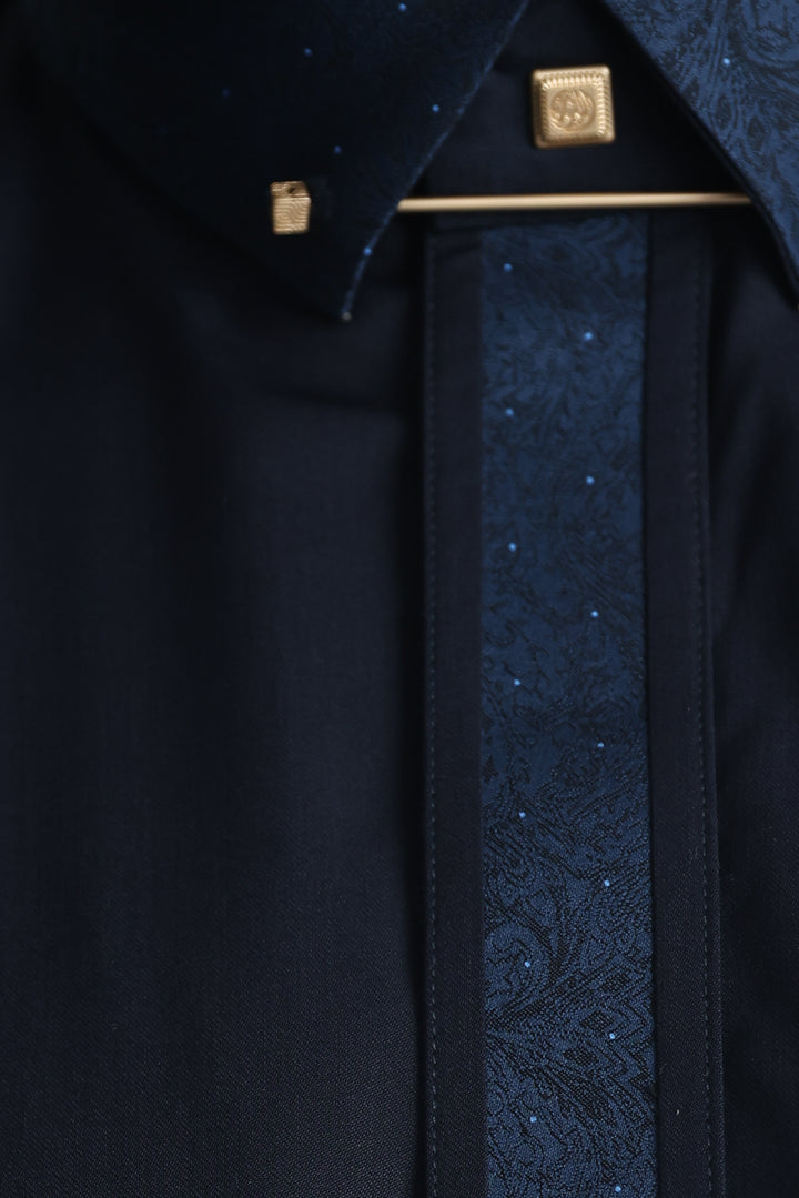 - The printed paisley fabric on the front, cuff and collar add a touch of sophistication to this traditional garment.