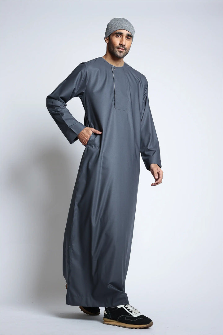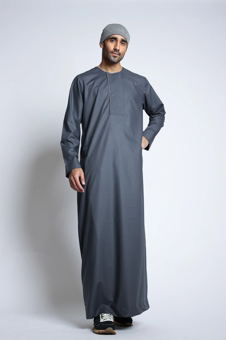 Al Noor Thobe | Dusty Grey Piping Thobe