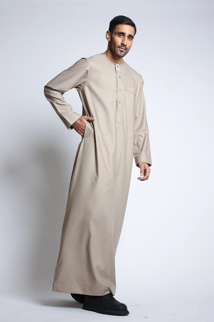Simple yet sophisticated, this thobe is perfect for both everyday wear and special occasions.