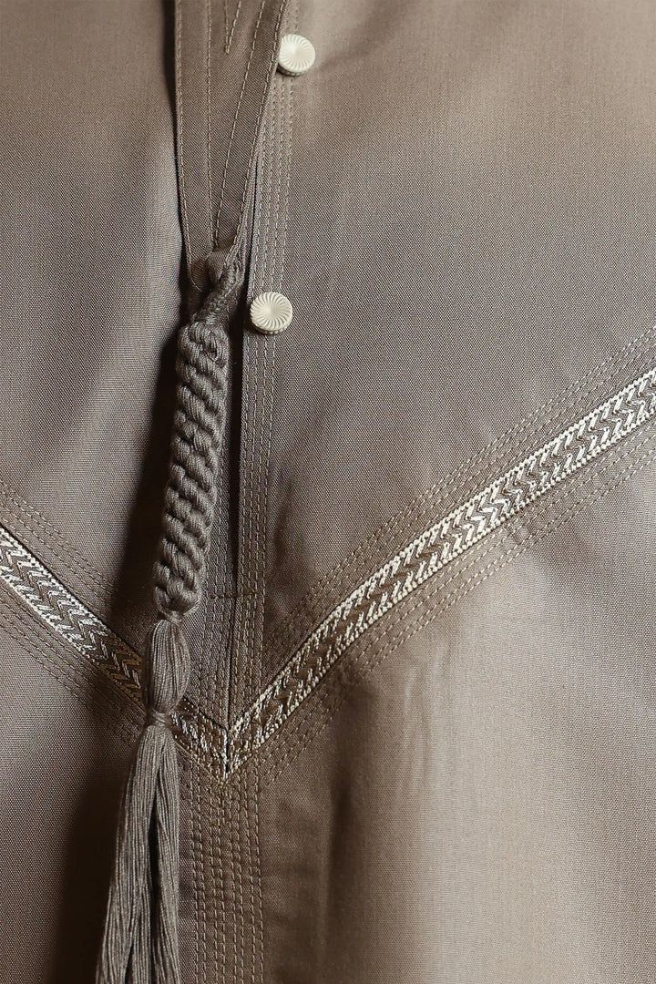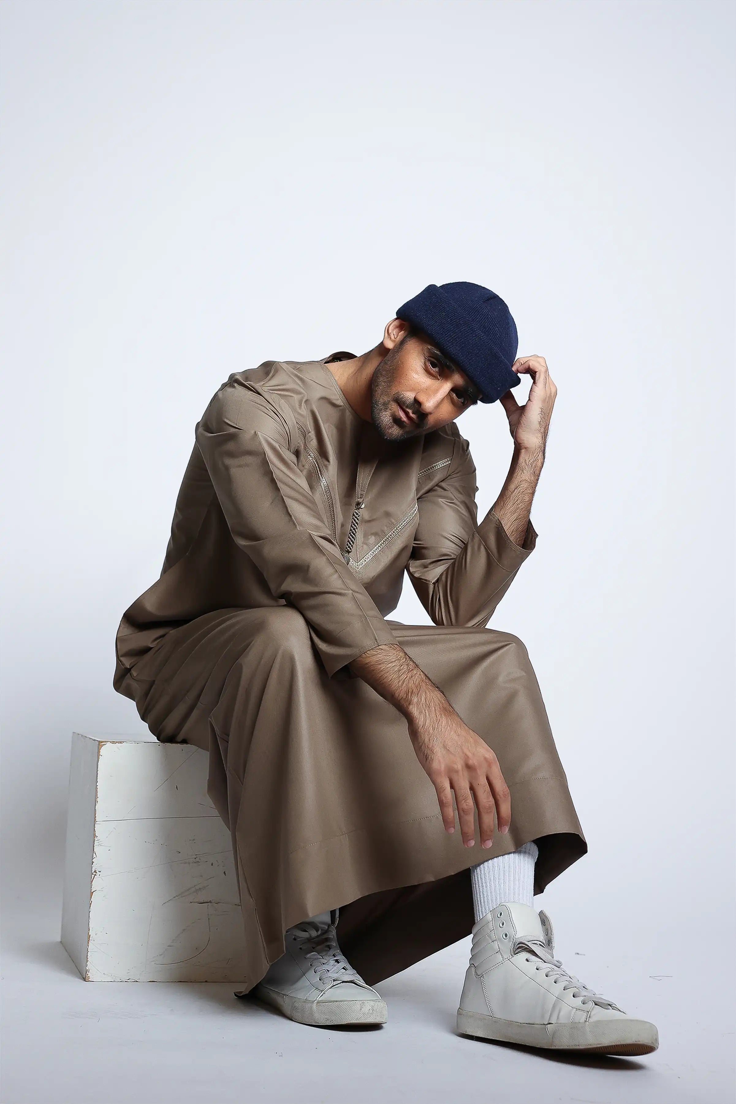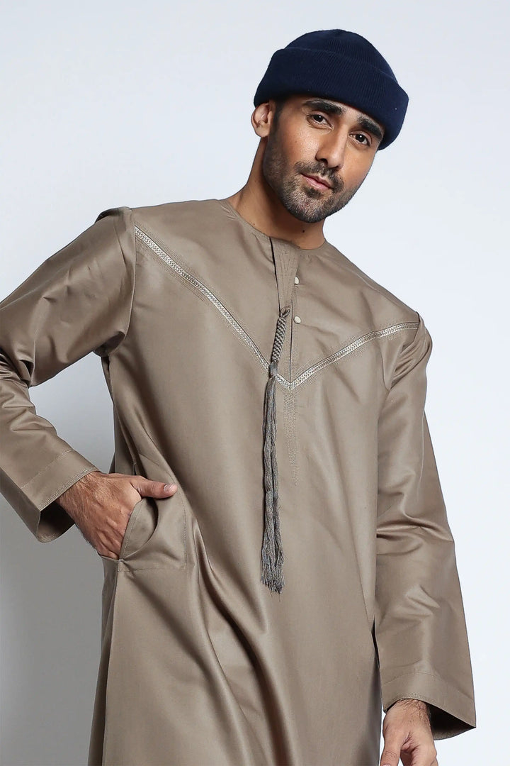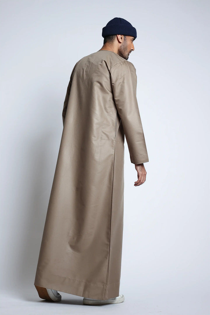 If there's one item that deserves a permanent place in your smart/casual line-up, it's the Cobblestone Emirati Kandura Omani Thobe. Al Noor Collection Cobblestone Emirati Thobe Removable Tassel Strong Metal Press Button Opening Side pockets on each side The Emirati Kandura Omani Thobe is made from soft, breathable fabric and is designed to provide comfort and style. It features a removable tassel, strong metal press button opening and pockets on both sides.