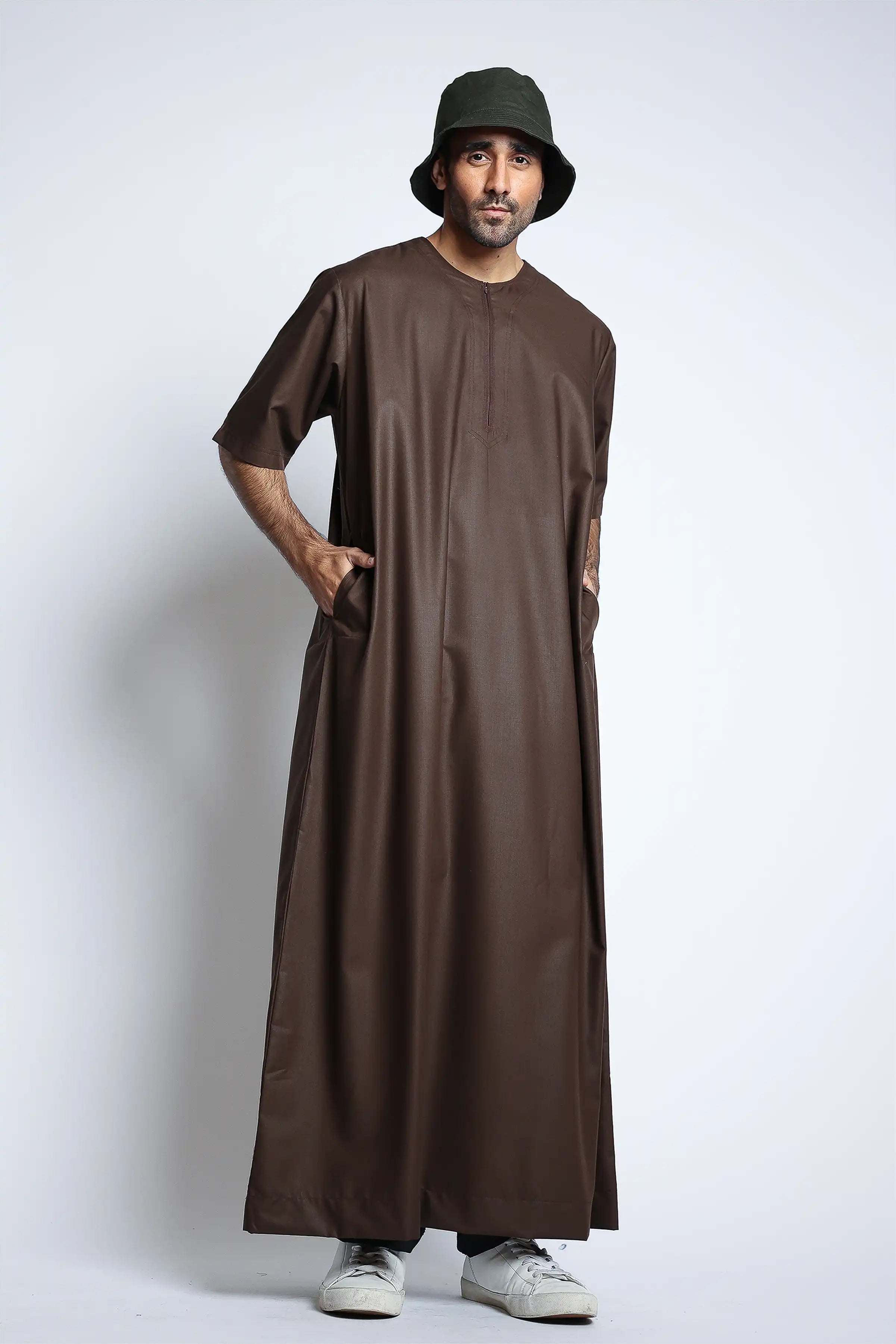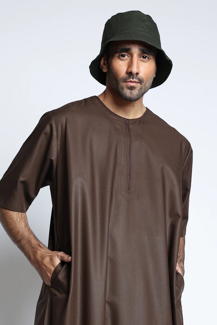 The Morocco Brown Half Sleeve Thobe is a wardrobe essential for any smart/casual occasion. Boasting 100% polyester fabric, this half sleeve Thobe is perfect for comfortable all-day wear.