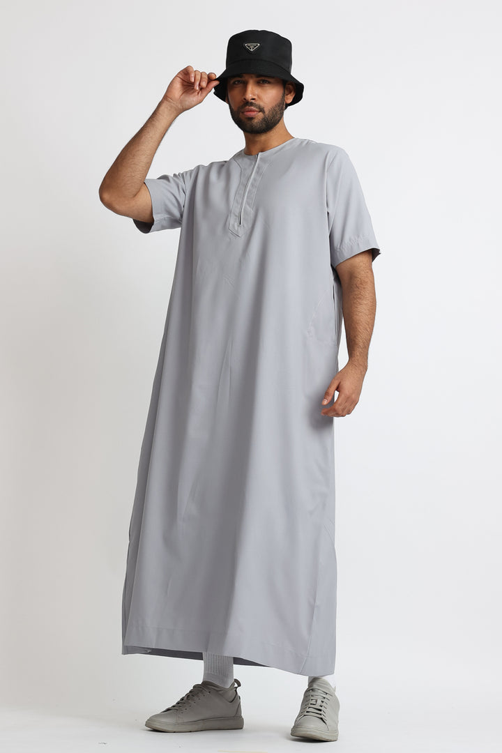 The Grey Cloud Half Sleeve Thobe is a wardrobe essential for any smart/casual occasion. Boasting 100% polyester fabric, this half sleeve Thobe is perfect for comfortable all-day wear.