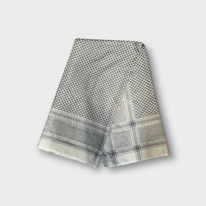 The Shemagh headscarf, also known as a Kufiyya or Ghutrah, is a traditional headdress primarily worn by men. Crafted from lightweight Polyester and an extra-long, square-shaped design, it can be used to protect the head, face and neck from sun, wind, and sand. Highly versatile, it can also be used as a scarf, turban, face covering, or makeshift towel.