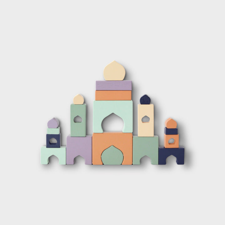 A classic set of 26 Masjid Blocks to inspire the budding builder in your toddler builder in your toddler. There’s lots of creative fun to be had building a Masjid, and learning to balance the windows, doors and blocks. These Masjid blocks are inspired by the Islamic architecture and come in varied shapes. This promotes their hand-eye coordination and fine motor skills.