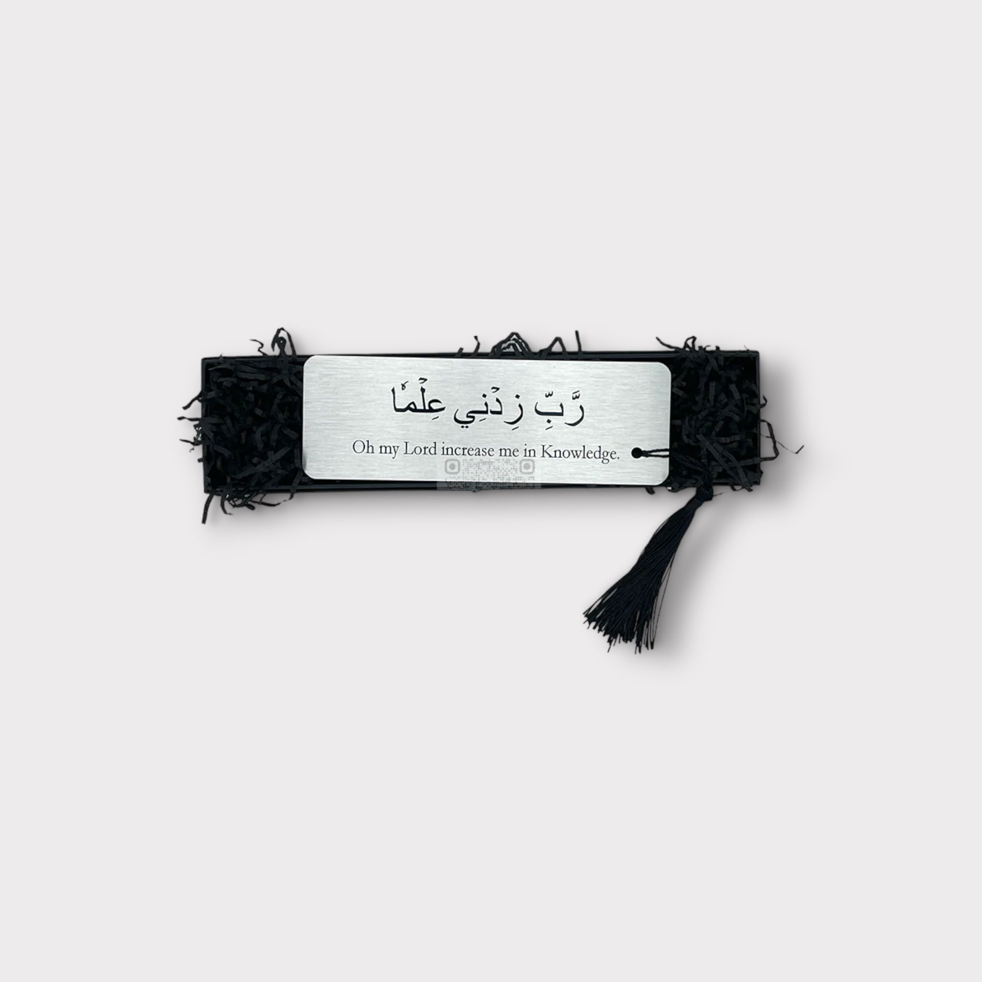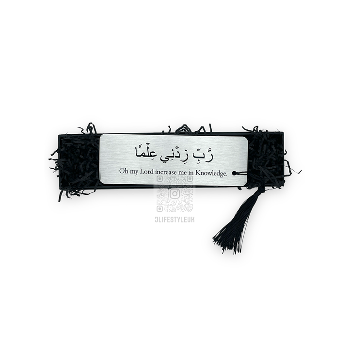 This sophisticated bookmark features delicate engraving of these meaningful phrases in both Arabic calligraphy and English text. Adorned with a decorative tassel, it makes a thoughtful gift for readers, students, or anyone seeking daily inspiration. Perfect for marking your place while adding a touch of spiritual elegance to your reading experience.