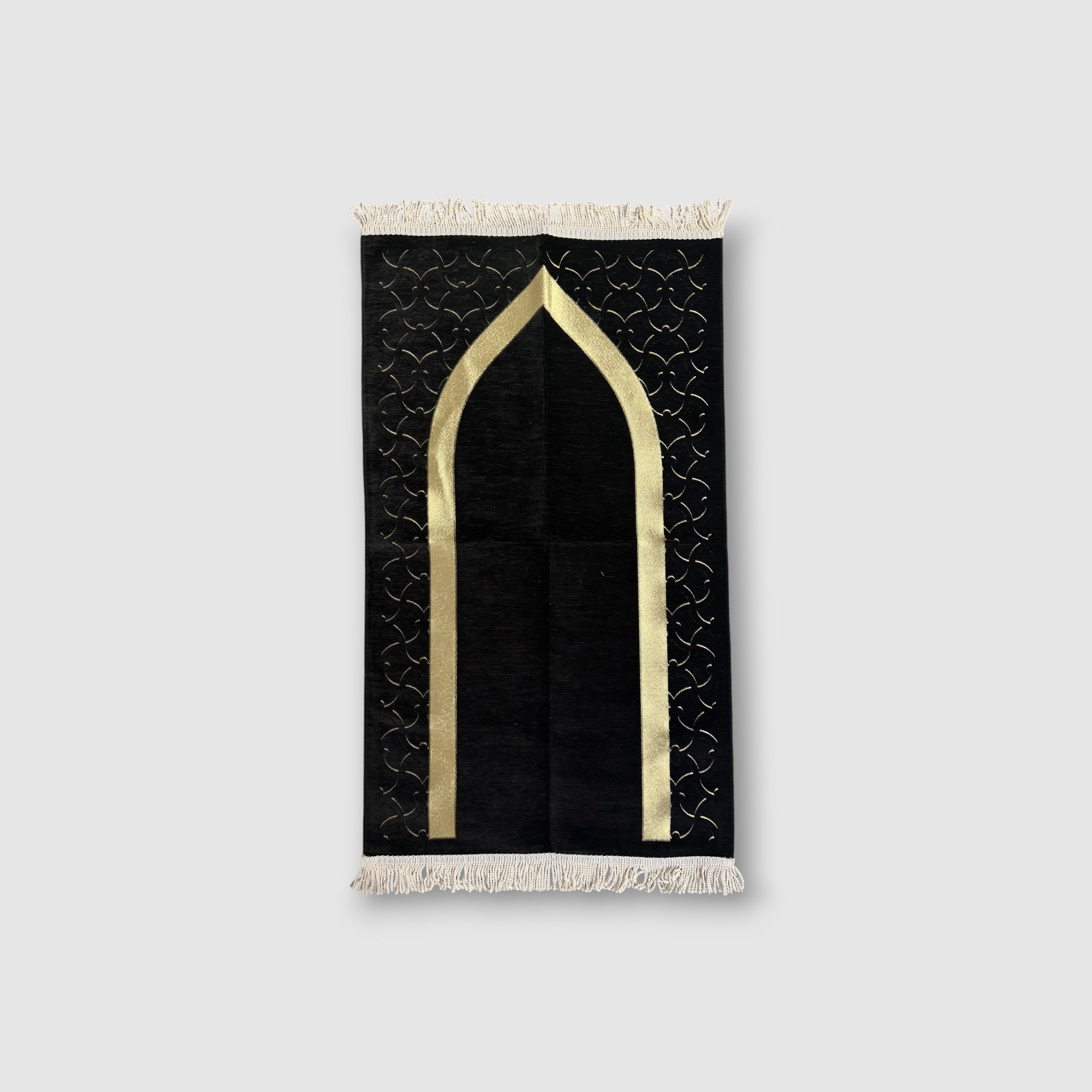This black mihrab prayer mat features a traditional design that helps indicate the direction of prayer. Its simple, elegant style makes it suitable for daily use and enhances focus during prayer. Durable and comfortable, it provides a clean and respectful space for your spiritual practice.