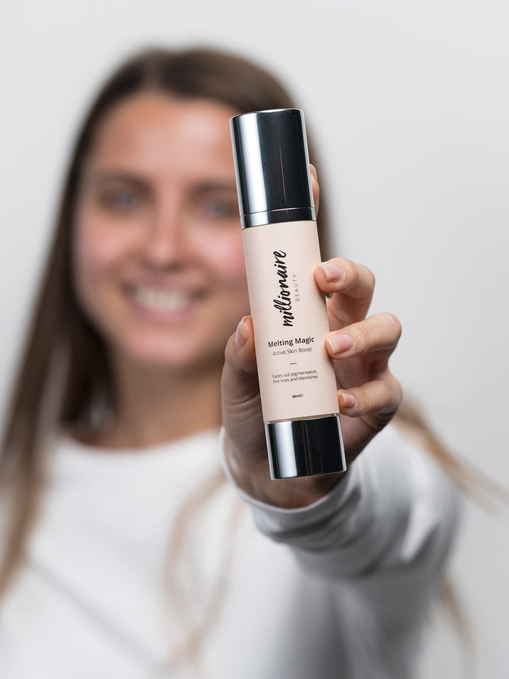 Millionaire Melting Magic is a unique combination of natural AHAs (Alpha Hydroxy Acids) including Glycolic Acid. We use between 7% and 15% of each AHA for maximum results.