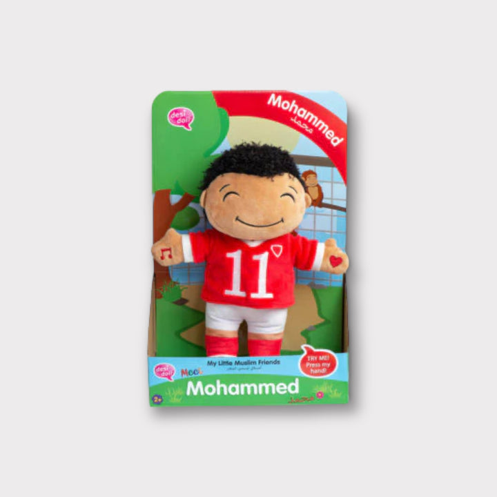 My Little Muslim Friend Mohammed speaks when you press his hands. Discover Mohammed’s favourite hobbies, and hear him sing ‘Tala Al Badru Alayna’, and ‘We Are the Best of Friends’!