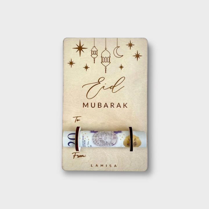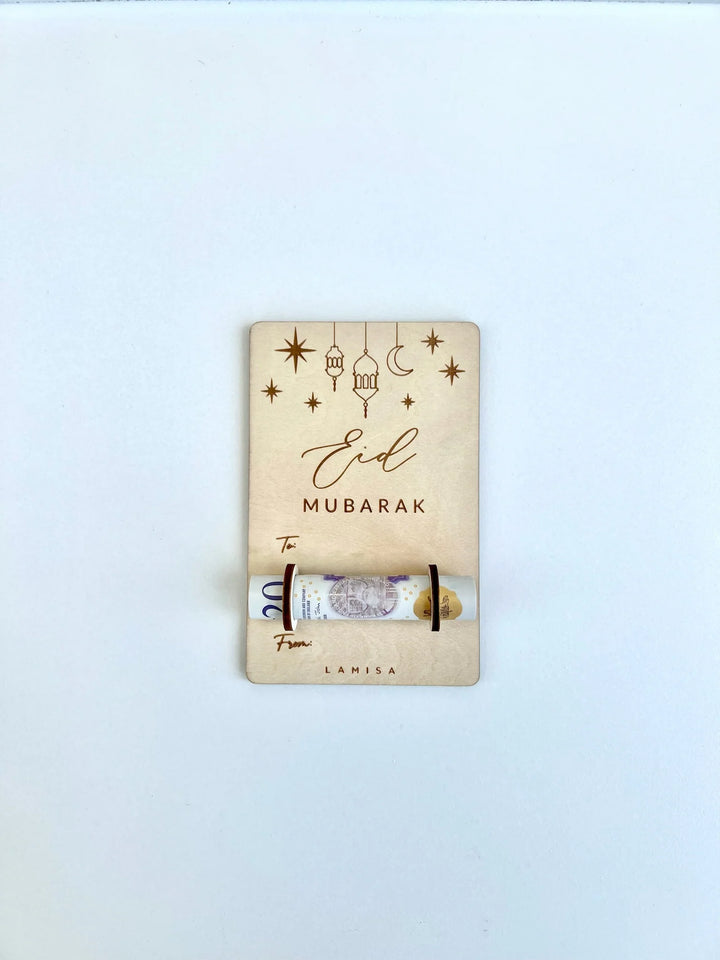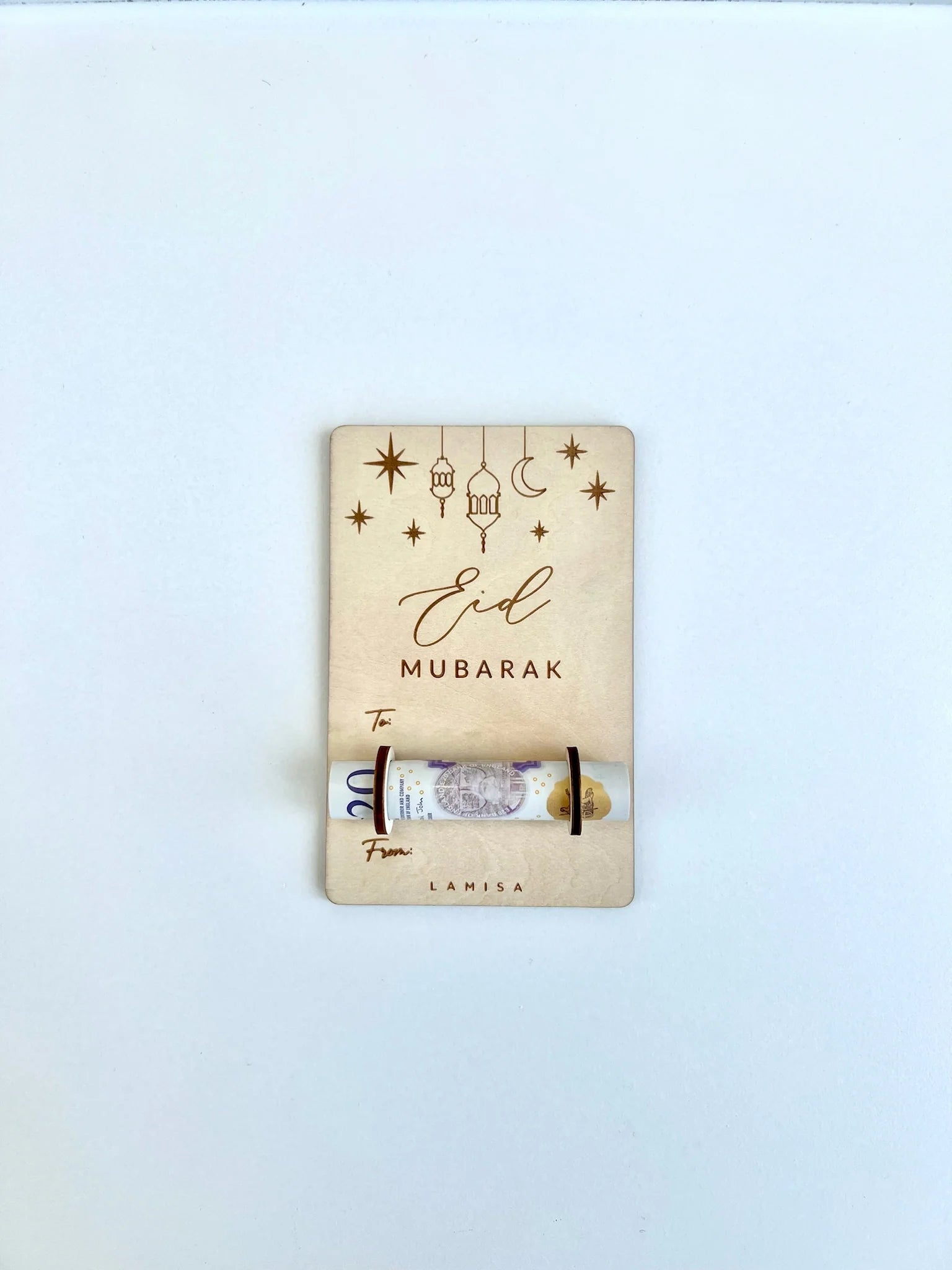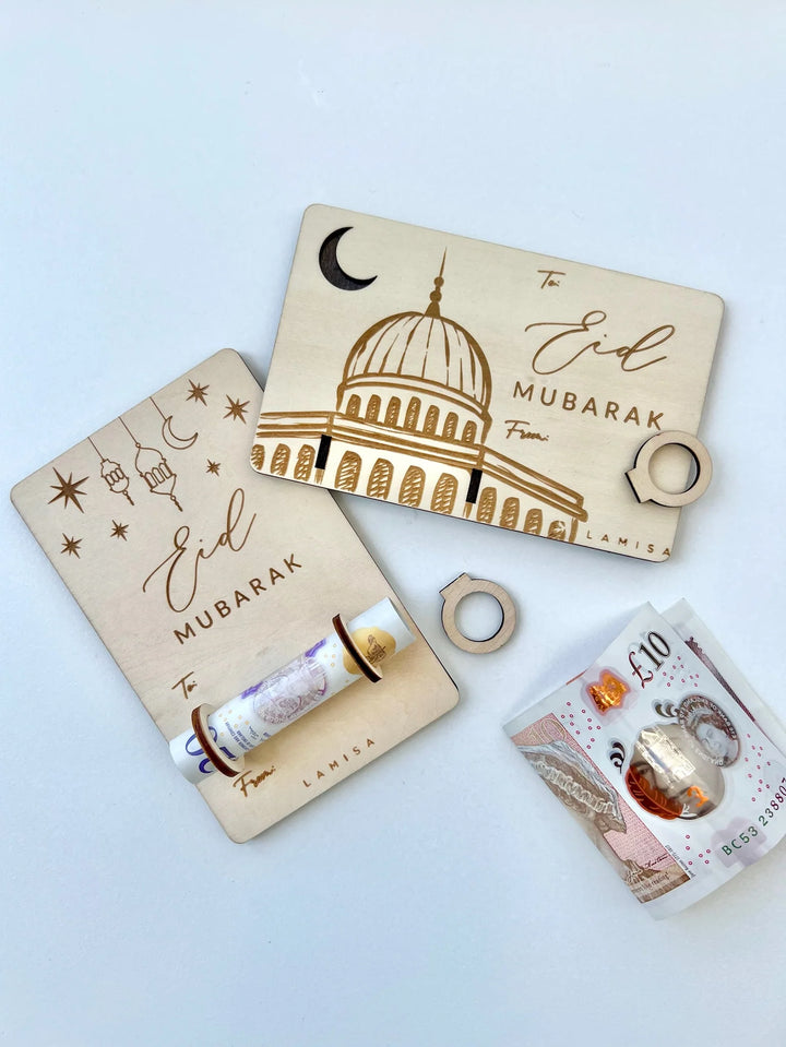 Celebrate the joyous occasion of Eid with this thoughtfully designed product that combines a beautiful card with a practical money-holding solution.